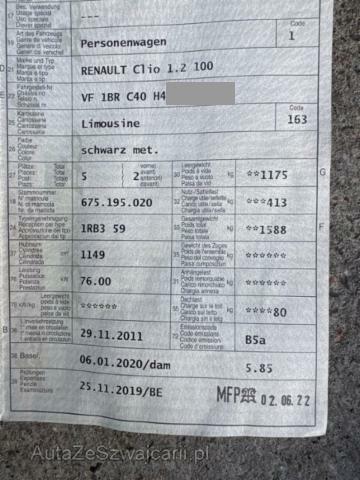 | Condition_and_Equipment | Zustand Fahrzeug ist rollbar. Sonstiges Fahrzeugdokumente vorhanden. Schlüssel Nur ein Schlüssel vorhanden. --- Achse Aufhängungsteile vorne rechts beschädigt. Hagel Hagelschaden mittel. --- Serienaustattung Airbag Fahrer und Beifahrerseite Elektronische Wegfahrsperre Elektrische Fensterheber vorne Aussenspiegel elektrisch verstellbar und heizbar Bordcomputer Zentralverriegelung mit Fernbedienung Aussentemperaturanzeige Lederlenkrad Lenkrad verstellbar ABS und EBV Elektr. Bremskraftverteilung Leichtmetallfelgen 16" Deaktivierung Beifahrerairbag Isofix-Kindersitzbefestigung Windowbags vorne + hinten Not-Bremsassistent mit Aktivierung der Warnblinkanlage Seitenairbags vorne Nebelscheinwerfer vorne Elektrische variable Servolenkung Höhenverstellbarer Fahrersitz Rücksitzlehne geteilt 1/3 oder 2/3 / umklappbar Show-me-home Lichtfunktion Klimaanlage manuell mit Pollenfilter Navigationssystem TomTom Radio/ CD/ MP3/ Fernbedienung am Lenkrad Automatische Türenverriegelung beim Fahren Reifenreparatur-Kit Keine Gewähr auf die Angaben der Serienausstattungen Sonderausstattung Elektrische Fensterheber vorne + hinten Metallic-Lackierung Heckspoiler Dunkle Verglasung hinten Pack Luxe |