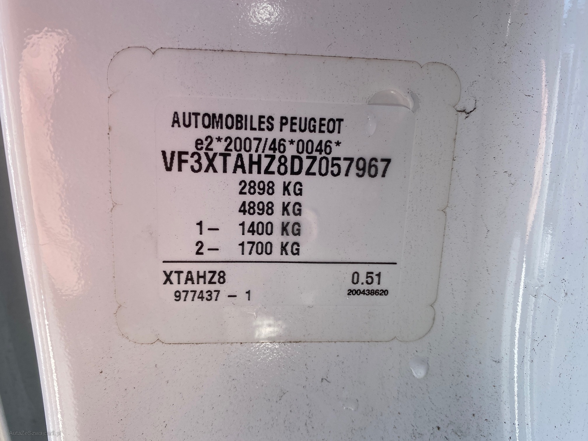 | VIN | VF3XTAHZ8DZ057967 |