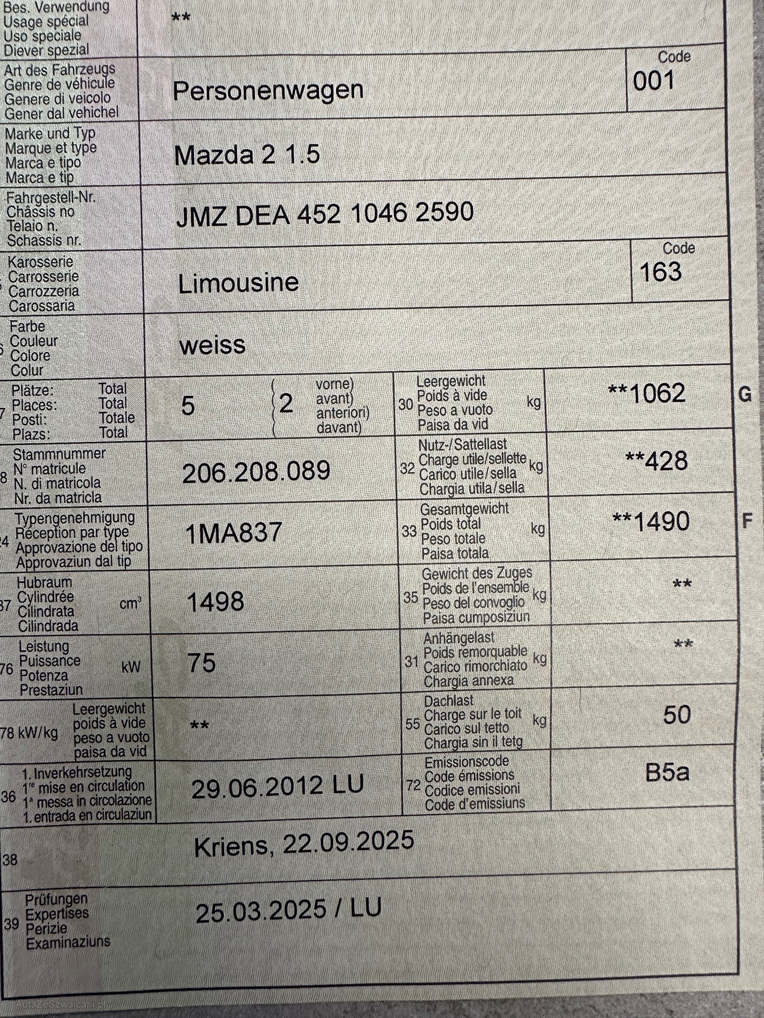 | Letzte Inspektion | 2025-03-01 |