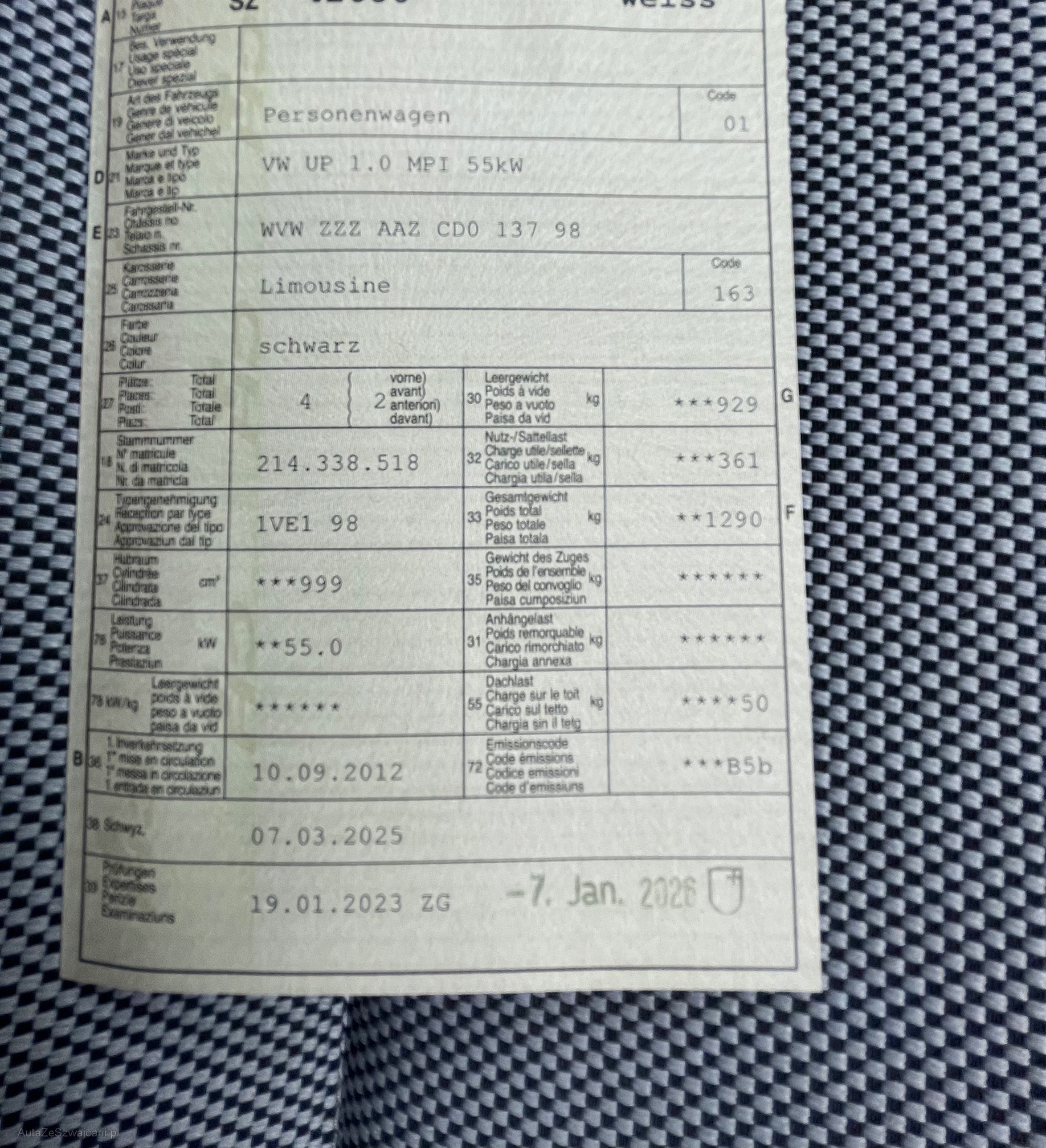 | VIN | WVWZZZ AAZ CDO 137 98 |