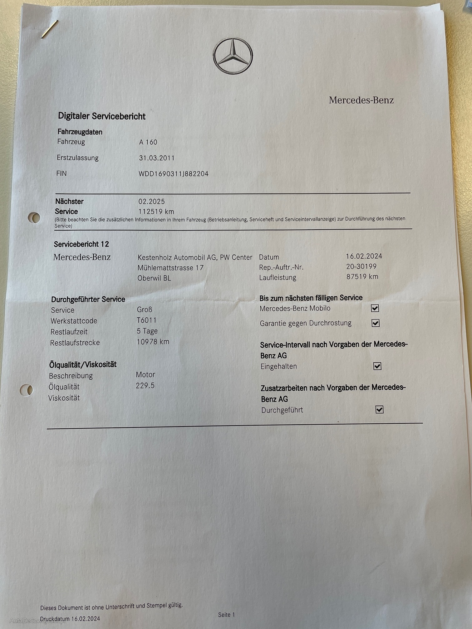 | Rost am Fahrzeug | No |