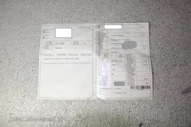 | Condition_and_Equipment | Zustand Fahrzeug ist NICHT fahrbar. Bereifung Fahrzeug wird mit Winterräder abgegeben. Schlüssel Nur ein Schlüssel vorhanden. --- Front Front eingedrückt. Kotflügel vorne links eingedrückt. Motorhaube eingedrückt. Frontblech/Maskenblech eingedrückt. Motor Alle Kühler vorne sind eingedrückt. Elektrik Kabelstränge verbrannt, beschädigt, abgerissen. Glas Windschutzscheibe ist gerissen. Sonstige Schäden Div.Carrosserie Teile sind leicht beschädigt. Weitere Beschädigungen Das Fahrzeug wurde unzerlegt begutachtet; die Schadenbeschreibung folgt gemäss den Bildern. Die aufgeführten Beschädigungen wurden erwähnt, sie dienen lediglich als Richtlinie und können nicht als abschliessend beurteilt werden. --- Serienaustattung Airbag Fahrer und Beifahrerseite Elektronische Wegfahrsperre Radio/ CD Sportsitze Elektrische Fensterheber vorne + hinten Aussenspiegel elektrisch verstellbar und heizbar Bordcomputer ABS Antiblockiersystem Servolenkung Seitenairbag Fahrer und Beifahrerseite Nebelscheinwerfer Zentralverriegelung mit Fernbedienung Aussentemperaturanzeige Höhenverstellbare Vordersitze Lederlenkrad Staub- und Pollenfilter Warnsummer für Licht Kopfstützen hinten Lenkrad verstellbar EBD Elektronischer Bremskraftverteiler Leichtmetallfelgen 15" Elektrisch einklappbares Dach Isofix-Kindersitzbefestigung Not-Bremsassistent mit Aktivierung der Warnblinkanlage Pack Alu Pack Visibilité Follow-me-home Lichtfunktion Getönte Scheiben Keine Gewähr auf die Angaben der Serienausstattungen Sonderausstattung Lederpolster Sitzheizung vorne Metallic-Lackierung |