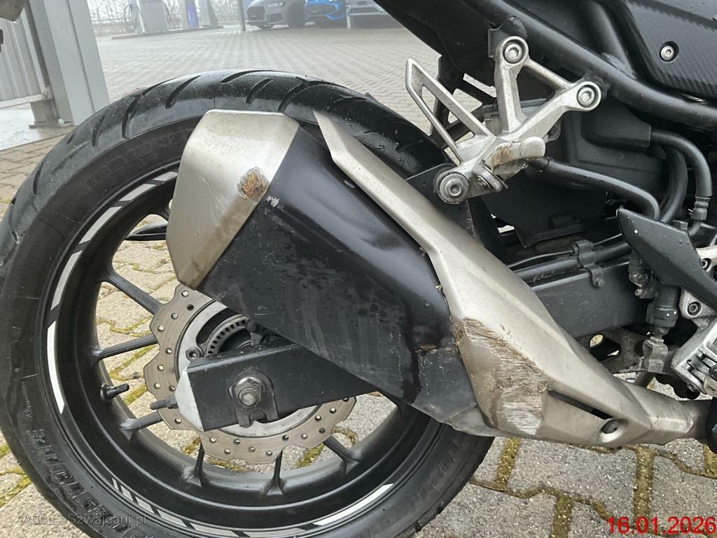 | Schadensbeschreibung | Beschreibung der Schäden: Sturzschaden ganze rechte Seite. Radabdeckung Front, Gabelholm rechts, Lenker, Spiegel rechts, Bremshebel rechts, Lenkerende, Blinker rechts, Verschalung Front, Verschalung Tacho, Seitenverschalung rechts, Kupplungsdeckel, Fussrasten inkl Halter rechts, Abgasanlage, Tank. Vorbestandene Schäden: Hinten links: Heckabdeckung links Kratzer. Die Bedienungsanleitung und das Serviceheft sind total durchnässt. |