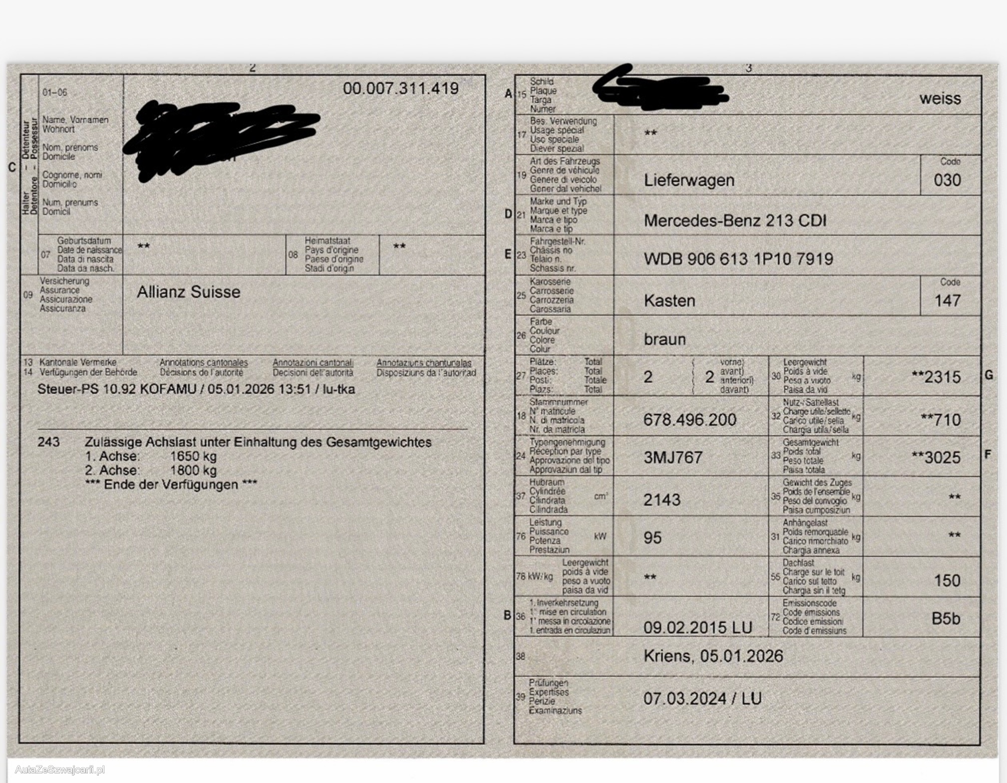 | Kommentar | Fz wurde technisch nicht geprüft. Für Info Timo Schwegler verlangen. |