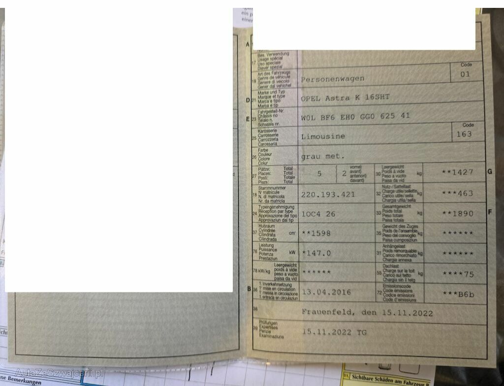 | Typ | Astra 1.6 T |