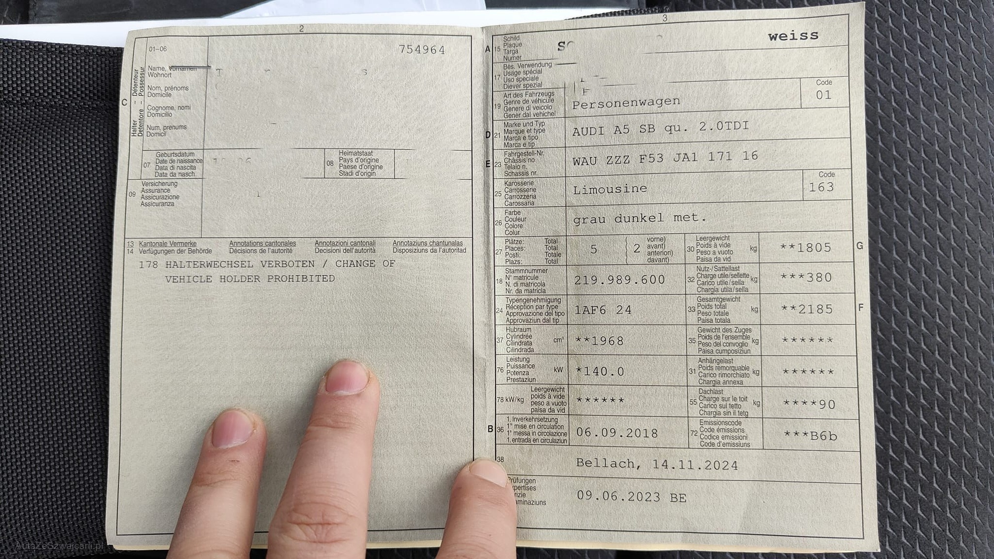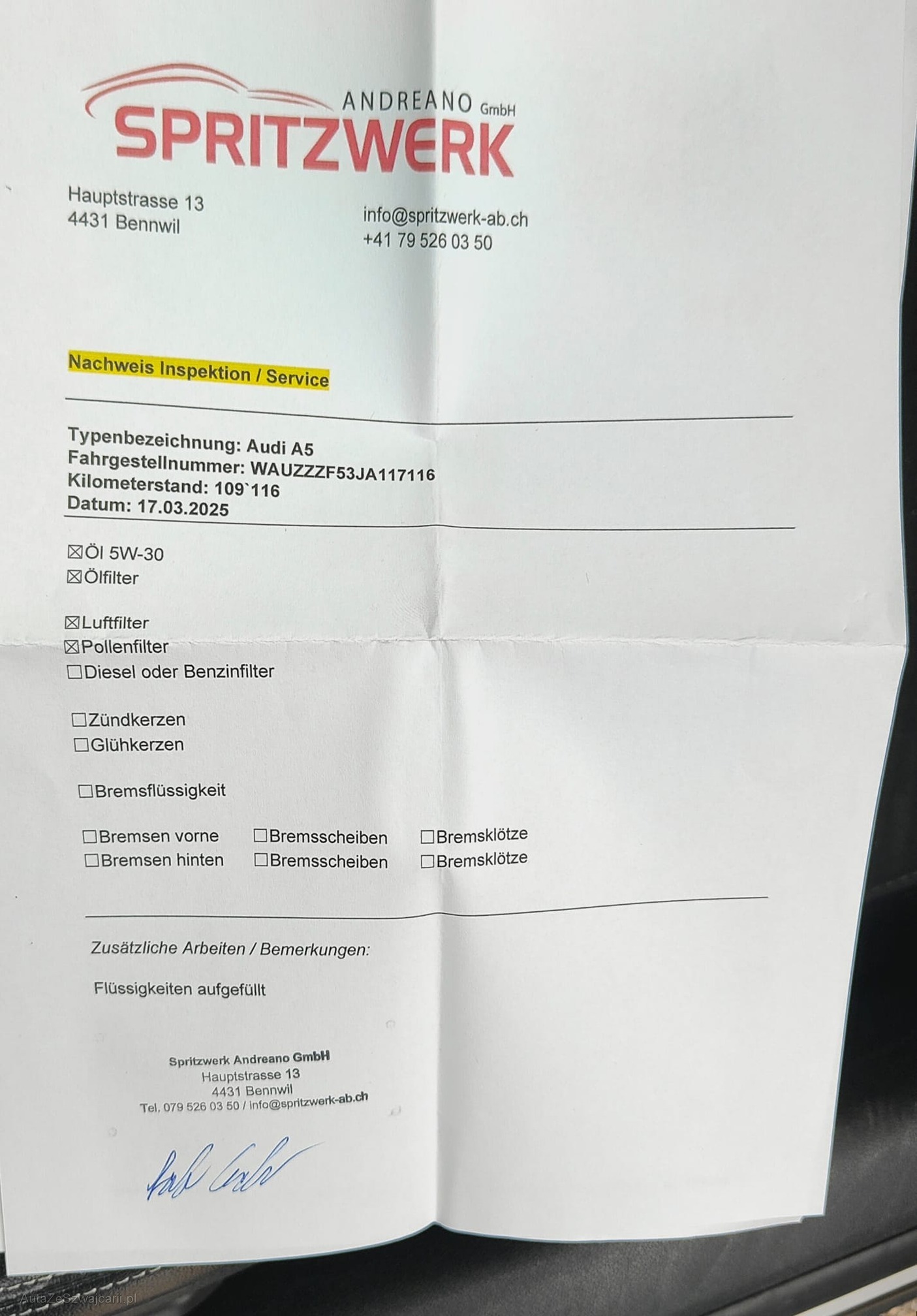 | Kommentar | - Fahrzeug nicht gewaschen jedoch keine grösseren Dellen oder Kratzer auf den ersten Blick gesehen - Fahrzeugbereifung, Fahrzeugzustand und Ausstattung gemäss Bildern. Unsere Fahrzeuge wurden keiner Prüfung unterzogen, Fahrzeugkauf auf eigenes Risiko ab Platz ohne Nachwährschaft. Das Gewährleisten für Sachmängel wird weggegangen. |