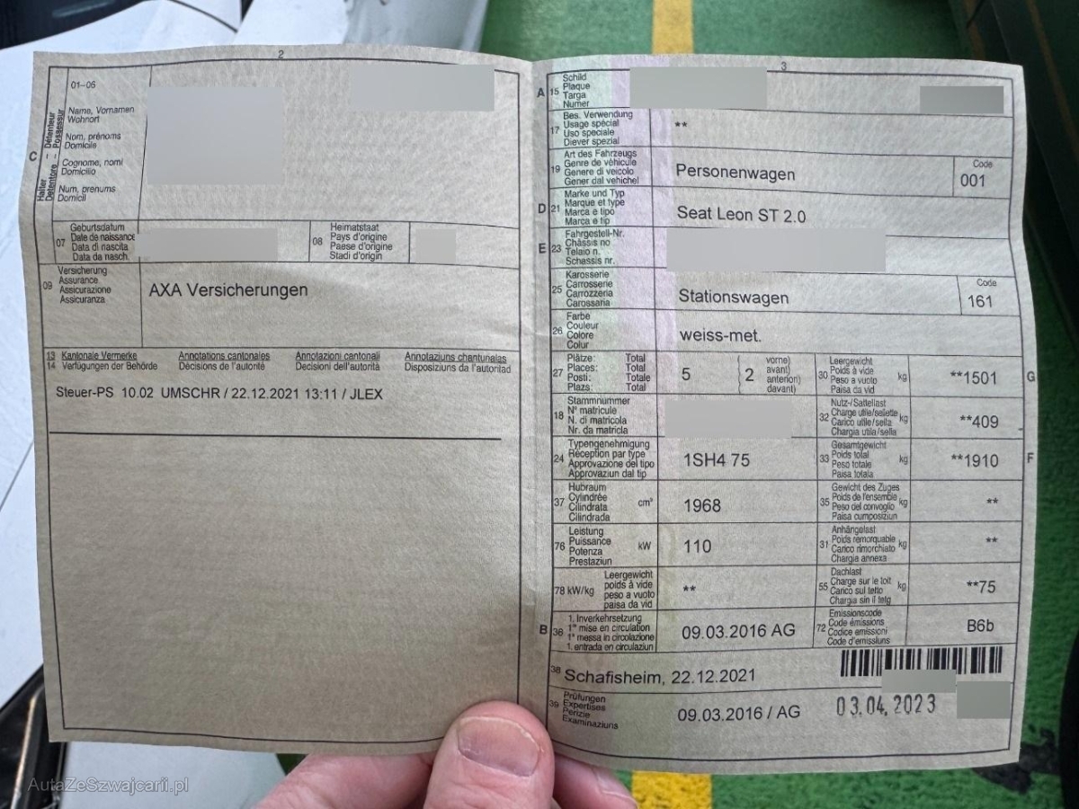 | Fahrzeugausweis | Vorhanden |