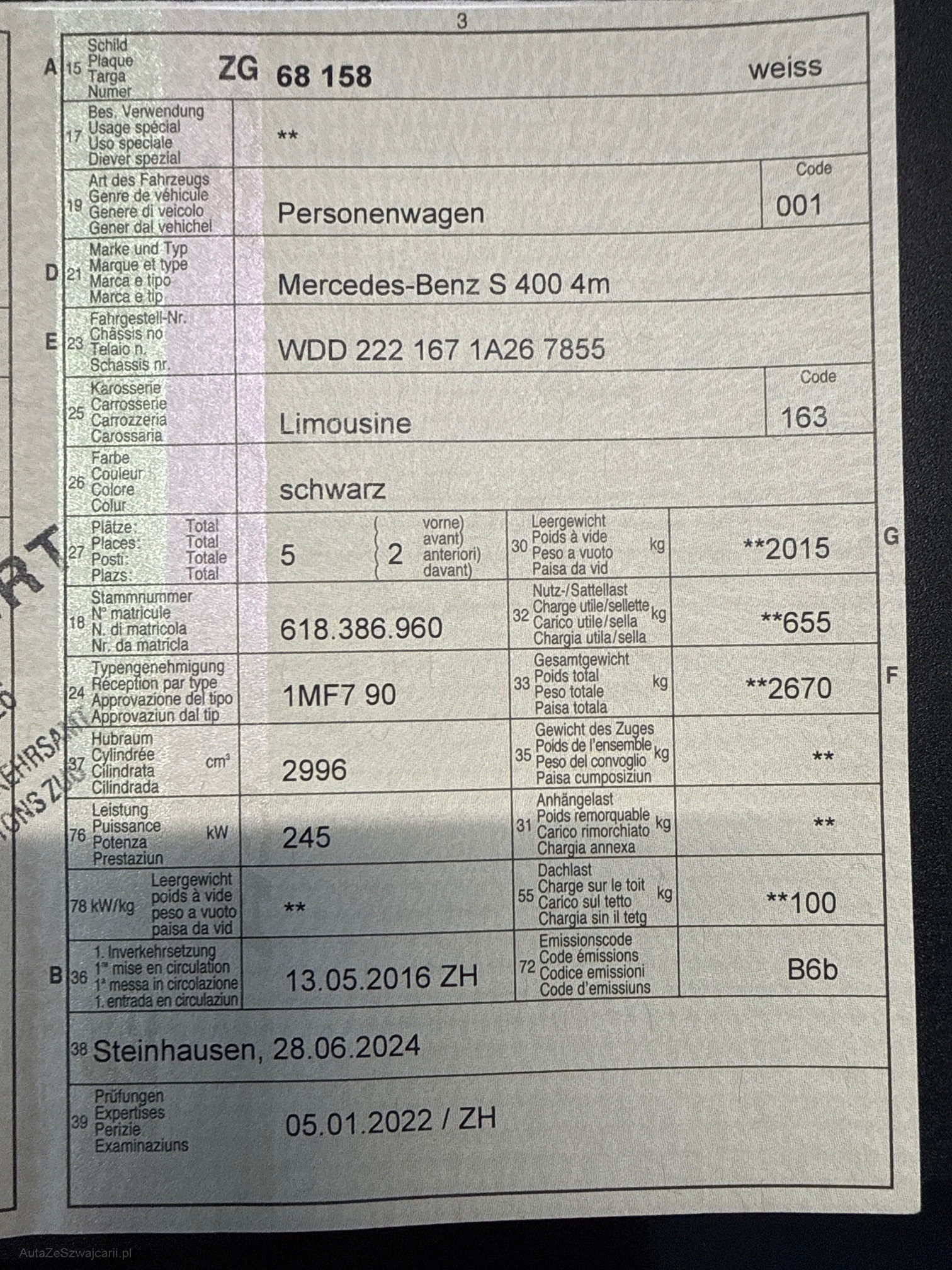 | Kommentar | Seltener S400 Benzin 4x4, super Ausstattung, diverse Kratzer, Ab Platz, keine Garantie |