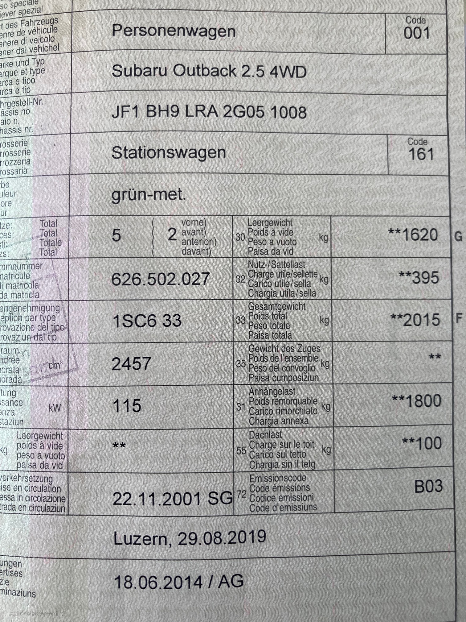| Kommentar | Schäden gem. Fotos! ABS Lampe leuchtet auf!! Zustand Carrosserie gem. Fotos! Verkauf ab Platz ohne Garantie und Nachwährschaft, sowie Wandelung und Minderung ausgeschlossen. Fahrzeug wurde nicht mechanisch geprüft! Schäden, Bereifung und Zustand siehe Fotos. Es werden keine Nachverhandlungen geführt, auch für Schäden die nicht sichtbar sind oder nicht deklariert wurden. Fahrzeug kann besichtigt werden, somit liegt das Risiko vollumfänglich beim Käufer. Fahrzeugabholung innerhalb von drei Arbeitstagen nach Erhalt des Zuschlages. Danach wird Fr. 50.-/Tag verrechnet. |