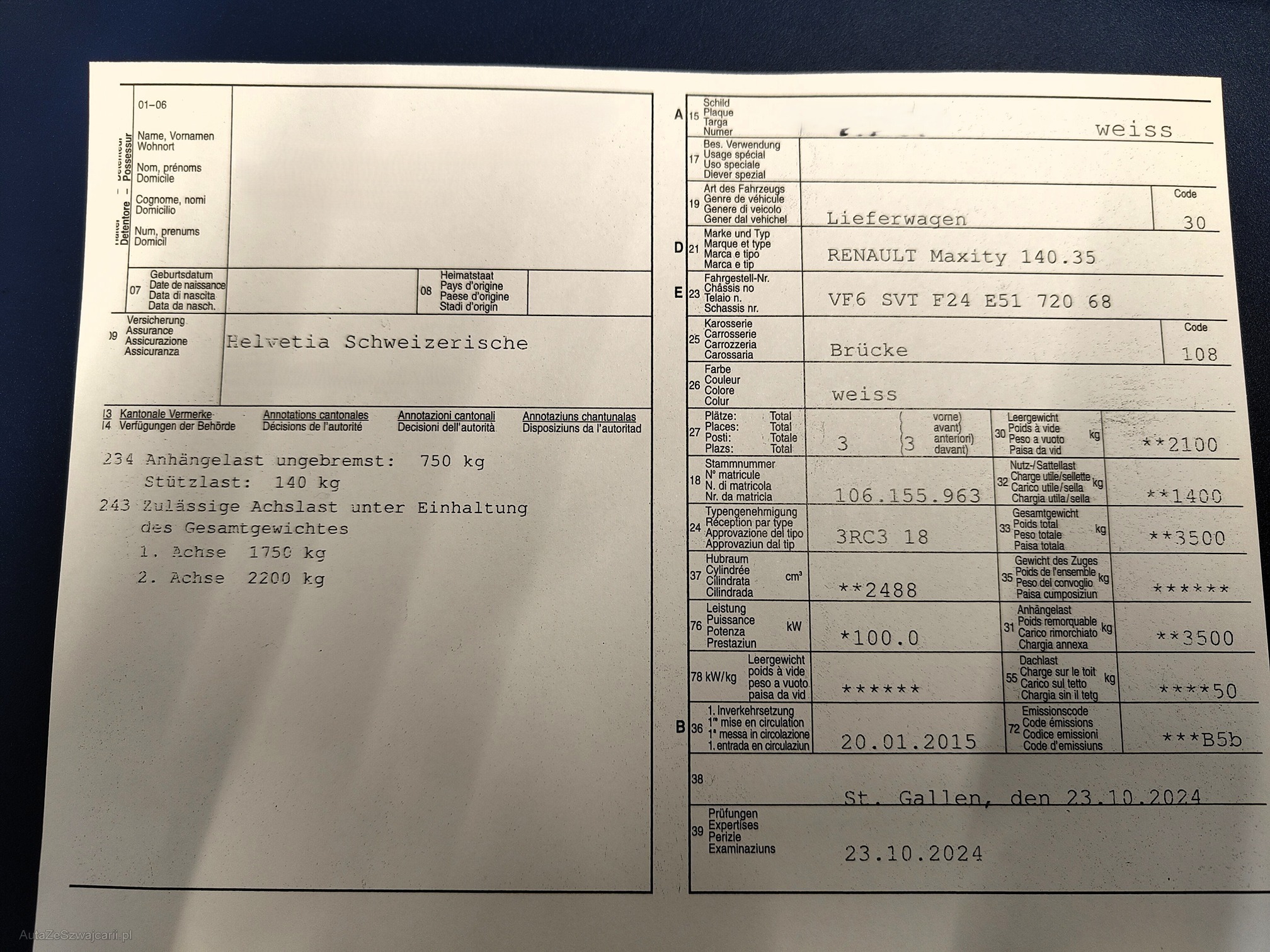 | Kommentar | Es wurde KEIN Werkstatttest durchgeführt. Das Fahrzeug wird ab Platz und ohne Garantie verkauft. Zustand gemäss Bilder, weist Gebrauchsspuren innen wie aussen auf, fährt sich jedoch einwandfrei. Jegliche Nachverhandlungen sind ausgeschlossen. |