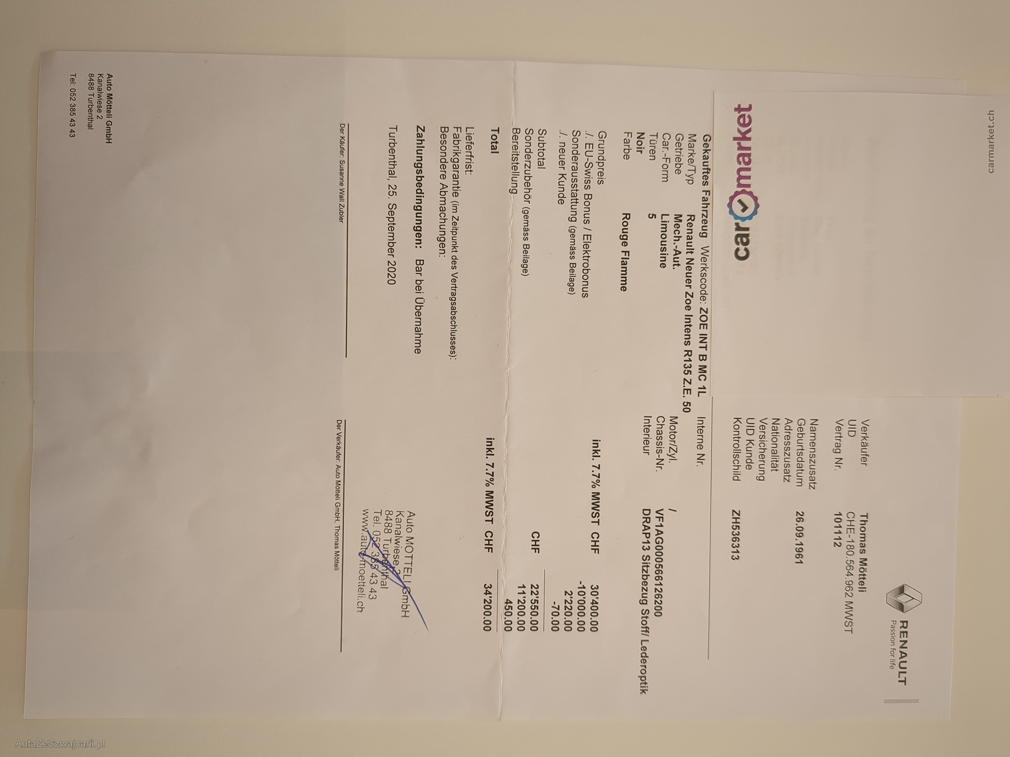 | Kommentar | Sehr gepflegtes Fahrzeug, Hund riecht man nicht, Batterie gekauft und Garantie bis 13.10.2028, Korrosionsgarantie bis 2032, kleine Risse im Fahrersitz, kleiner Lackschaden an der Stossstange, sonst top, 1 Türe wurde mal ersetzt (Parkschaden), regelmässig Service ausgeführt, CCS vorhanden, Batterie mehrheitlich zu Hause geladen |