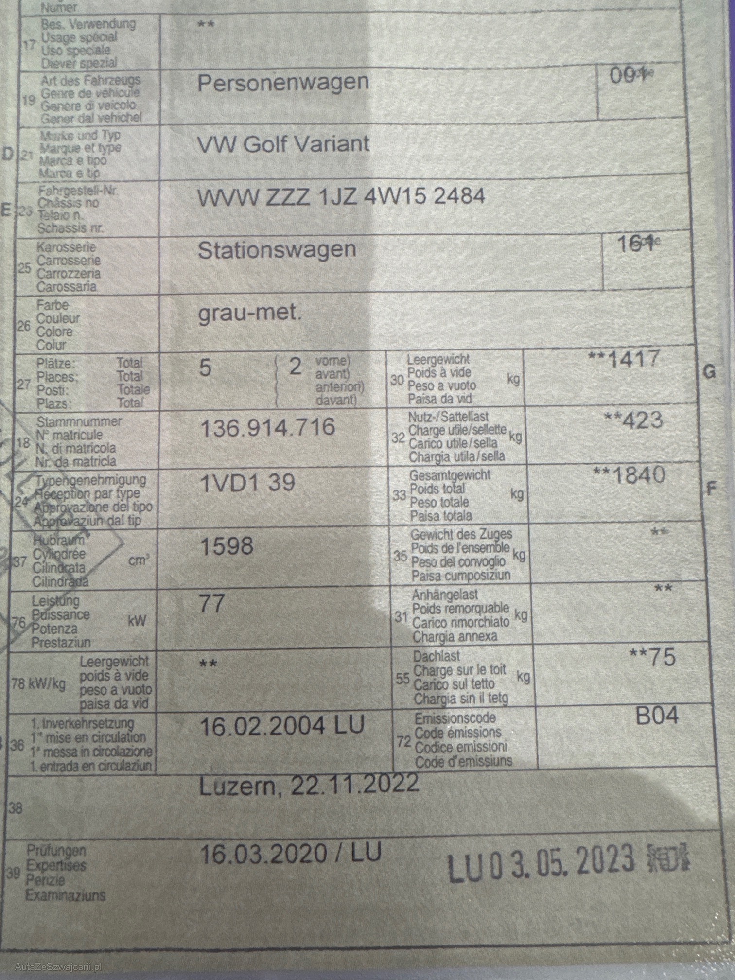 | VIN | Wvwzzz1jz4w152484 |