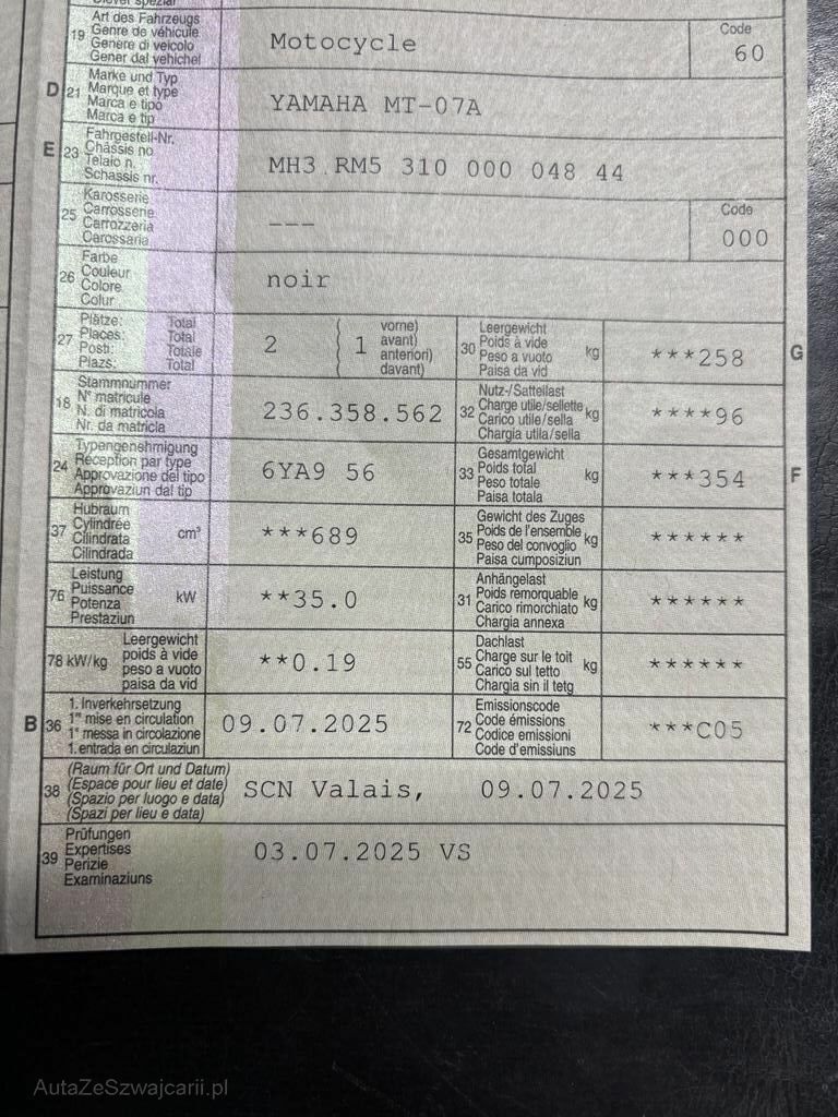 | Typ | MT-07 (35KW) |