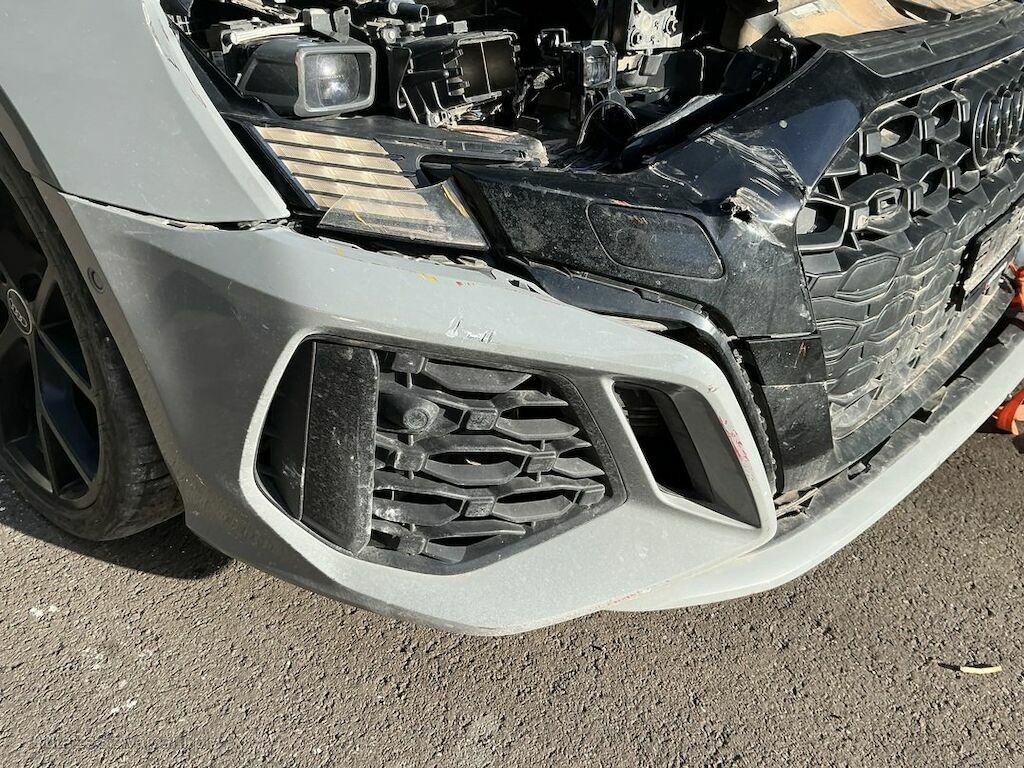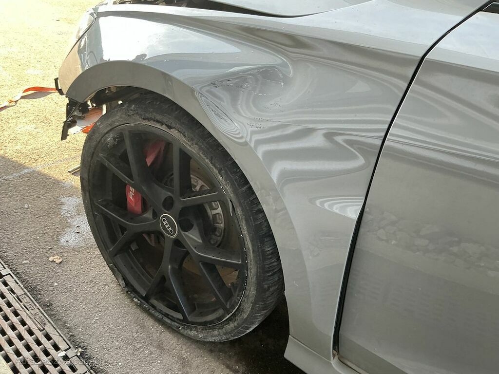 Face avant, flanc gauche, flanc droit, arrière du véhicule, dessous du véhicule, boîte de vitesse, trains roulant, suspensions, direction, jantes et échappement endommagés.