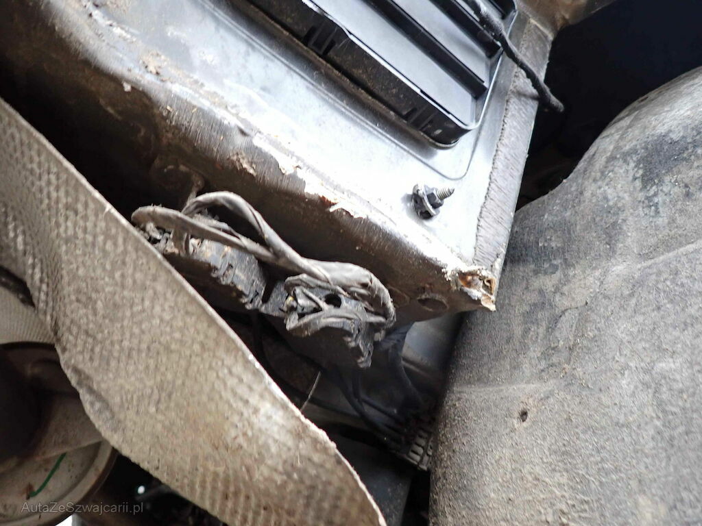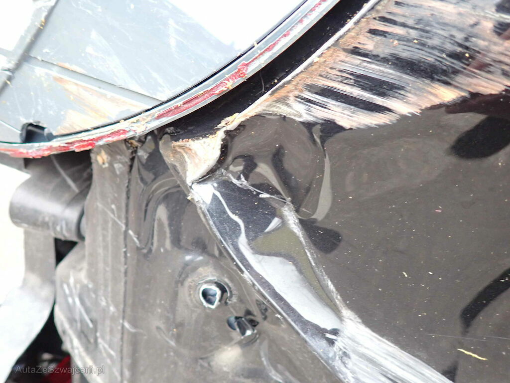 Heckstossfänger, Heckleuchte rechts und Seitenwand rechts eingedrückt; Radaufhängung und Reifen hinten rechts beschädigt; Türe hinten rechts Kratzer