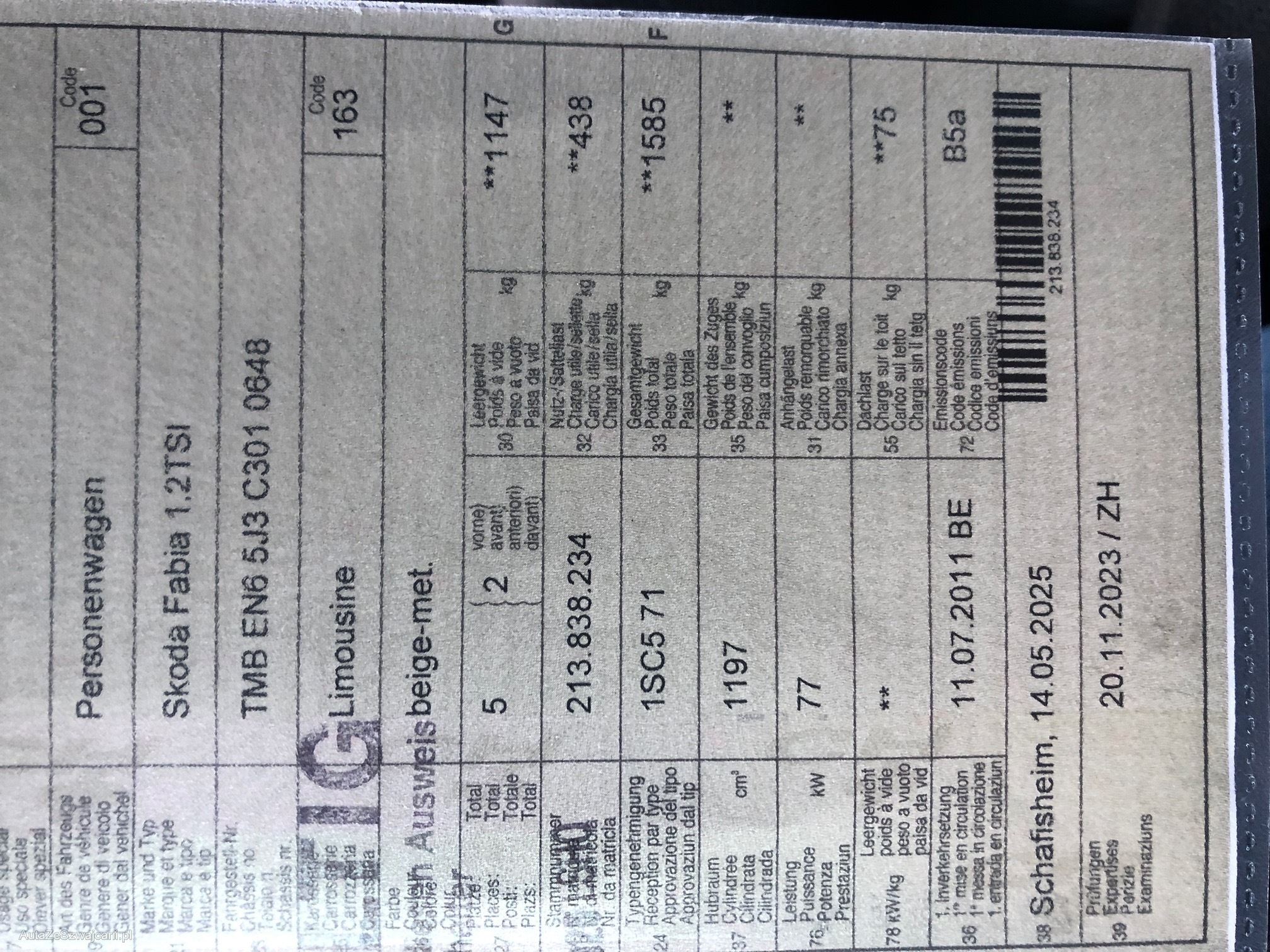 | Kommentar | Kein Werkstatt Test gemacht. Läuft einwandfrei! Nur 1 Schlüssel, Hutablage fehlt und nur 3 Alufelgen für Sonmerrad vorhanden, einmal nur Reifen. |