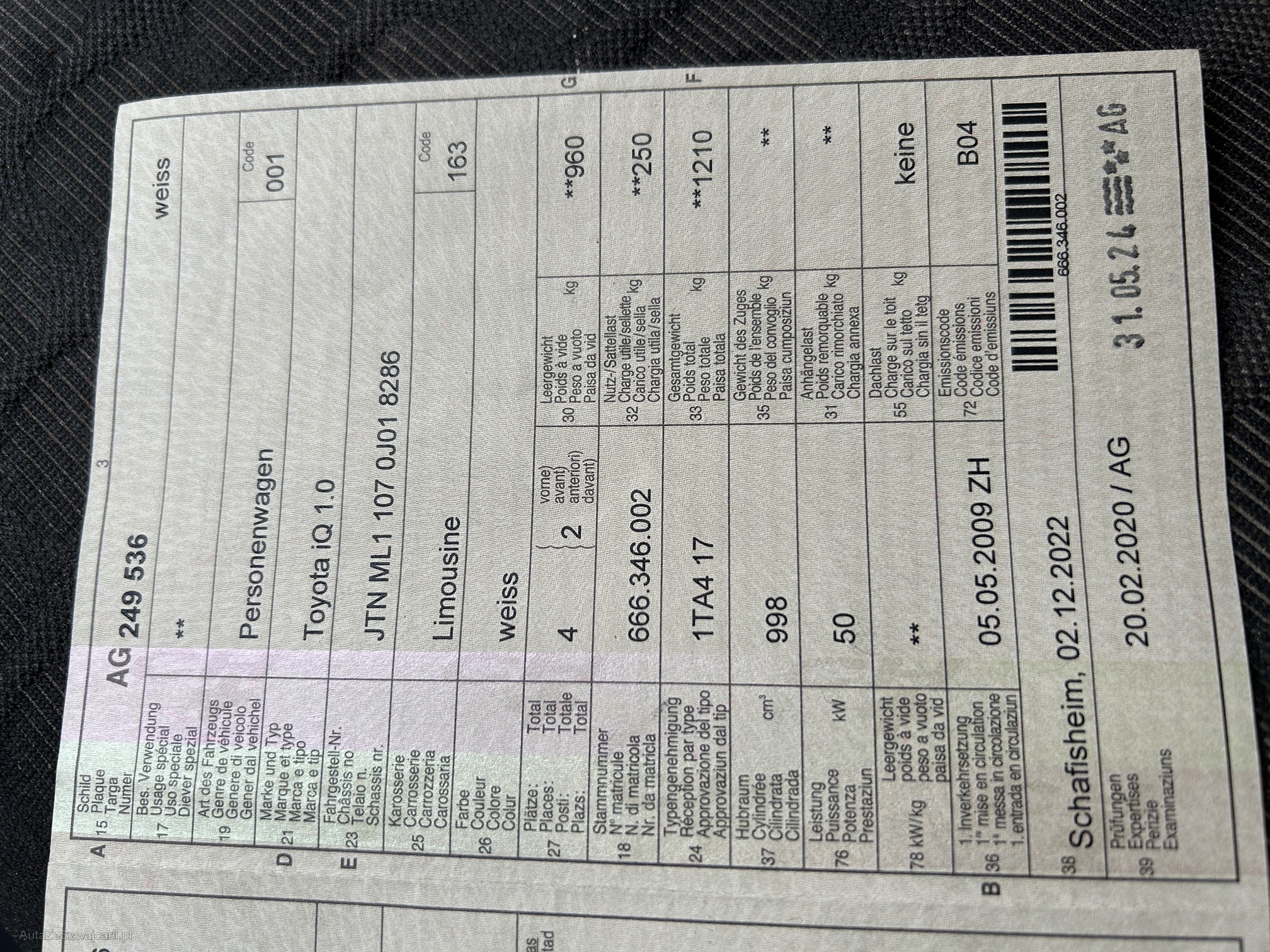 | Kommentar | Es wurde kein Werkstatt-Test durchgeführt. Fahrzeug hat starke Gebrauchsspuren. |