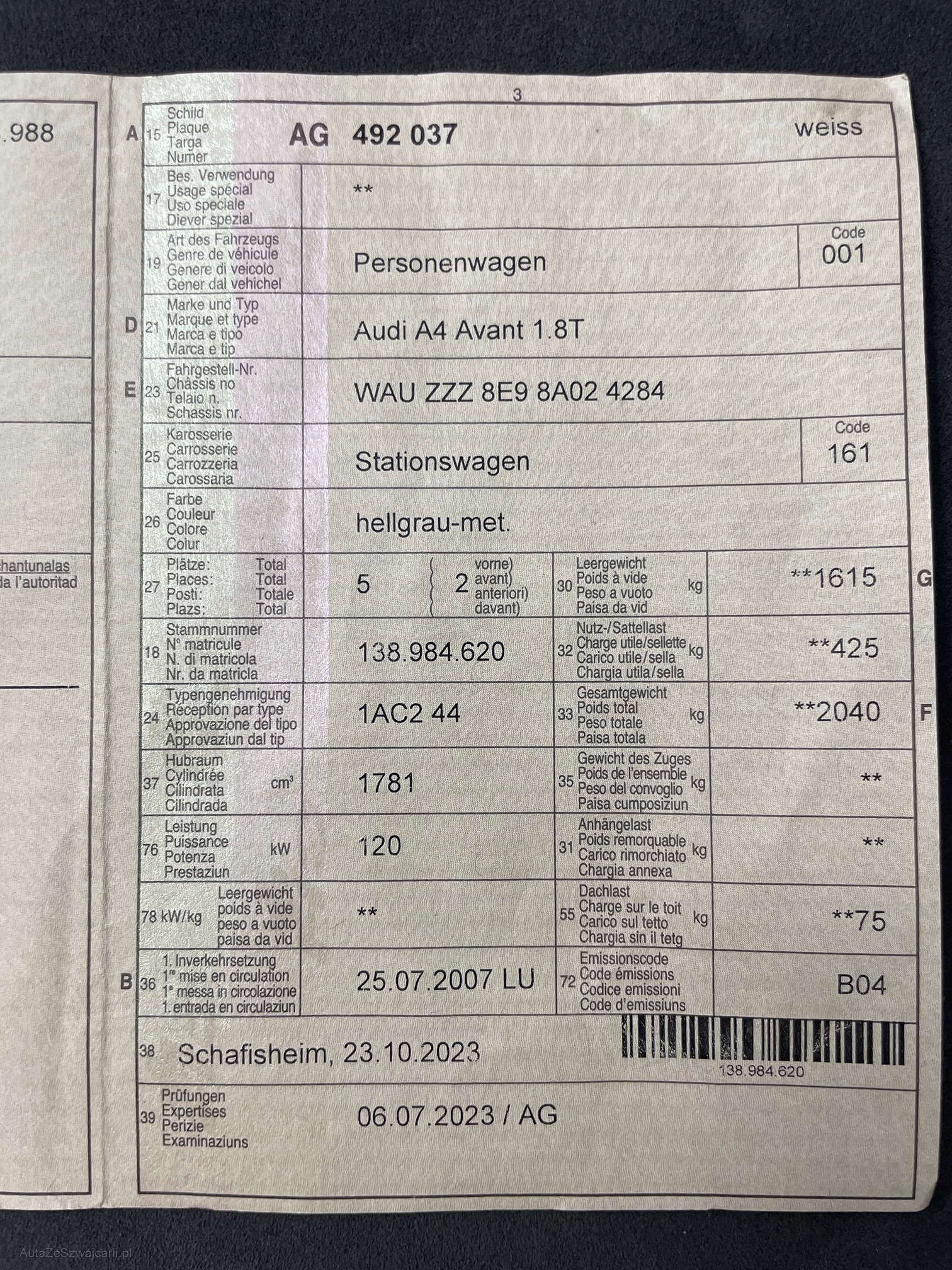 | VIN | WAUZZZ8E98A024284 |