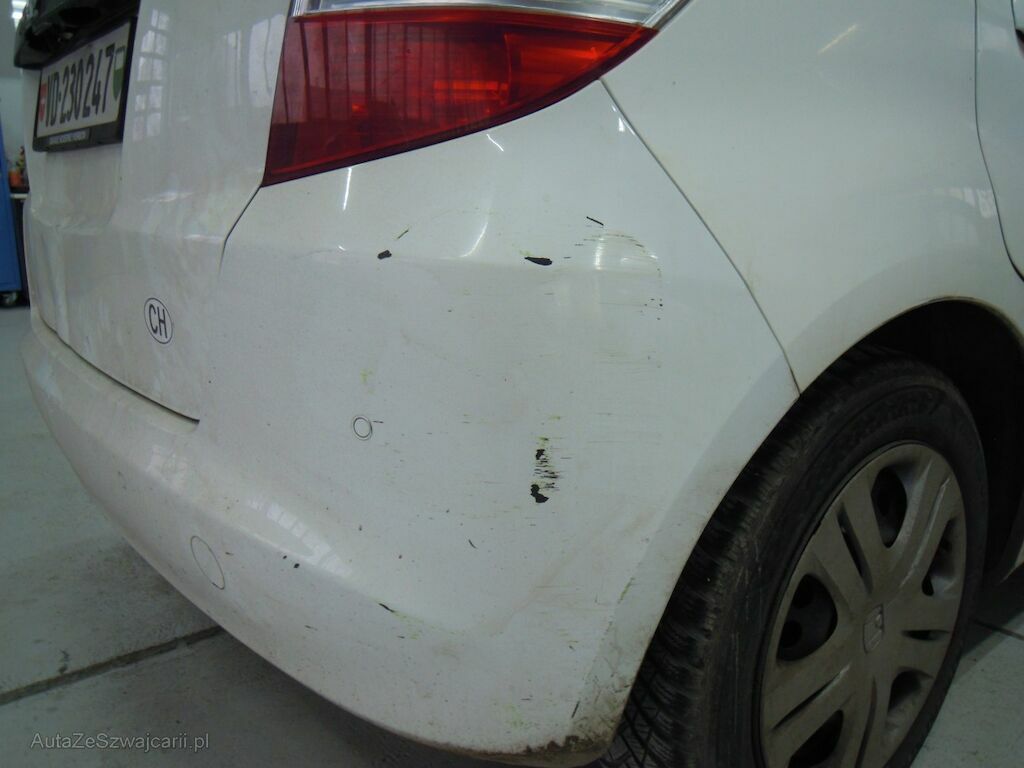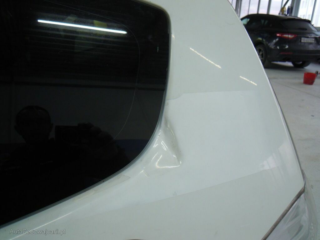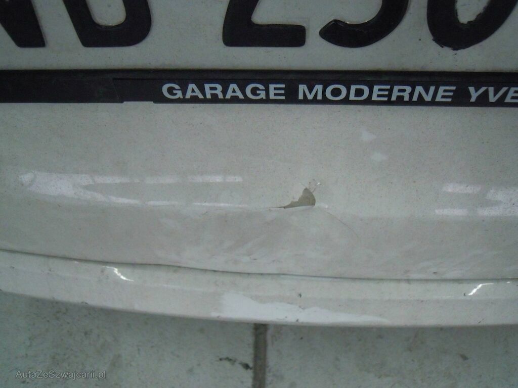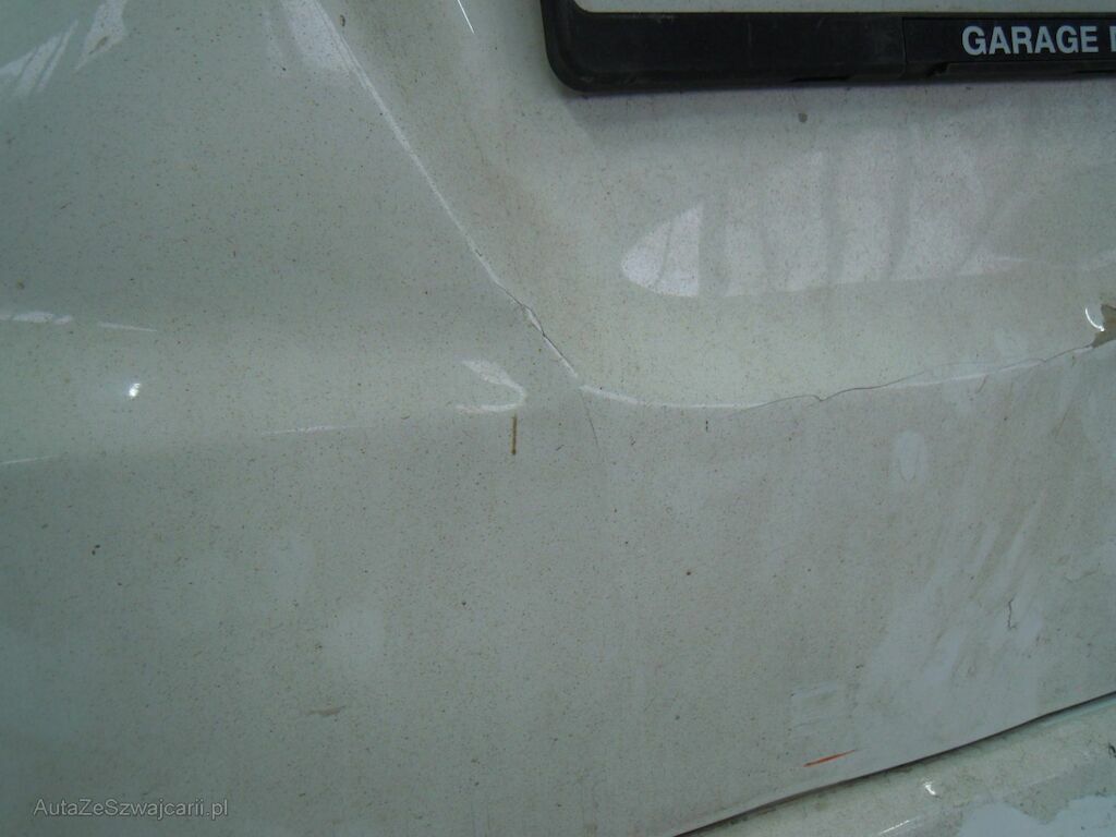 Dommage zone arrière: Hayon enfoncé, moulure de hayon cassée, pare-chocs griffé.