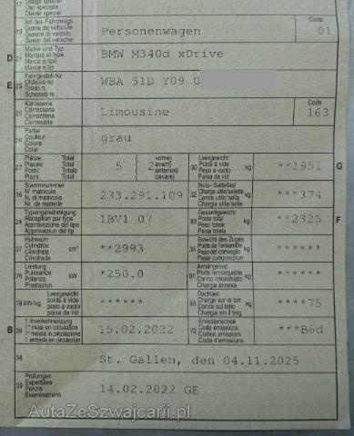 | Condition_and_Equipment | Zustand Fahrzeug ist rollbar. Bereifung Fahrzeug wird mit Winterräder abgegeben. Sonstiges Fahrzeugdokumente vorhanden. --- Rechts Anstoss rechts im Bereich der C-Säule. Anstoss rechts im Bereich der D-Säule. Achse Risiko Hinterachse. Hinterachse rechts beschädigt. --- Serienaustattung Seitenairbag für Fahrer und Beifahrer Reifendruck-Kontrollsystem RDC Innenspiegel automatisch abblendbar Elektrische Fensterheber Durchladesystem Regensensor Dynamische Stabilitäts-Control DSC Antiblockiersystem ABS Servotronic M-Sportfahrwerk Pack M Aerodynamik Pack Ablage Kindersitzbefestigung Isofix Hochglanz Shadow-Line Dachhimmel anthrazit M-Lederlenkrad 12 V Steckdose Fahrer und Beifahrer-Airbag M Heckspoiler Sportsitze für Fahrer und Beifahrer Velours-Fussmatten Interieurleisten Aluminium Uni-Lackierung Multifunktions-Lenkrad Kopfairbags vorne + hinten Park Distance Control PDC vorn und hinten Kopfstützen im Fond klappbar Dynamische Traktions-Control DTC Dieselpartikelfilter Geschwindigkeitsregelung mit Bremsfunktion Digital audio DAB-Tuner Ambientebeleuchtung Auto Start Stopp Funktion Sportlenkung variabel Freisprecheinrichtung mit USB-Schnittstelle Keine Gewähr auf die Angaben der Serienausstattungen M Sportbremse ConnectedDrive Services LED-Scheinwerfer Grösserer Kraftstofftank BMW Service Plus 10 Jahre/ 100'000 km Teleservice Intelligenter Notruf Klimaautomat 3-Zonen inkl. Mikrofilter M Sportdifferential Aufmerksamkeitsassistent Pack Connected Alcantara/ Sensatec-Kombination Frontkollisionswarnung M Leichtmetallräder Doppelspeiche 790/ Mischbereifung Active Guard Plus Sonderausstattung Lenkradheizung Lordosenstütze Elektrische Sitzverstellung mit Memory Sitzheizung für Fahrer und Beifahrer Sonnenschutzverglasung Komfortzugang Head-Up Display Fernlichtassistent BIN Instrumententafel lederbezogen Glasdach elektrisch Adaptives M Fahrwerk Harman/Kardon Surround Sound System Active Protection Laserlicht Gestiksteuerung WLAN Hotspot M Sicherheitsgurte Akustikverglasung Parking Assistant Plus Hochglanz Shadow-Line erweitert Interieurleisten Aluminium Mesheffect Pack Innen und Aussenspiegel Driving Assistant Professional M Leichtmetallräder Doppelspeiche 791/ Notlauf. u. Mischb. Ausstattung Klimaanlage Leder-Ausstattung Leichtmetall-Felgen Navigationsgerät Rückfahrkamera Rückfahrsensoren Schiebedach Tempomat Xenon Metallic-Lackierung ABS (Anti-Blockier-System) |