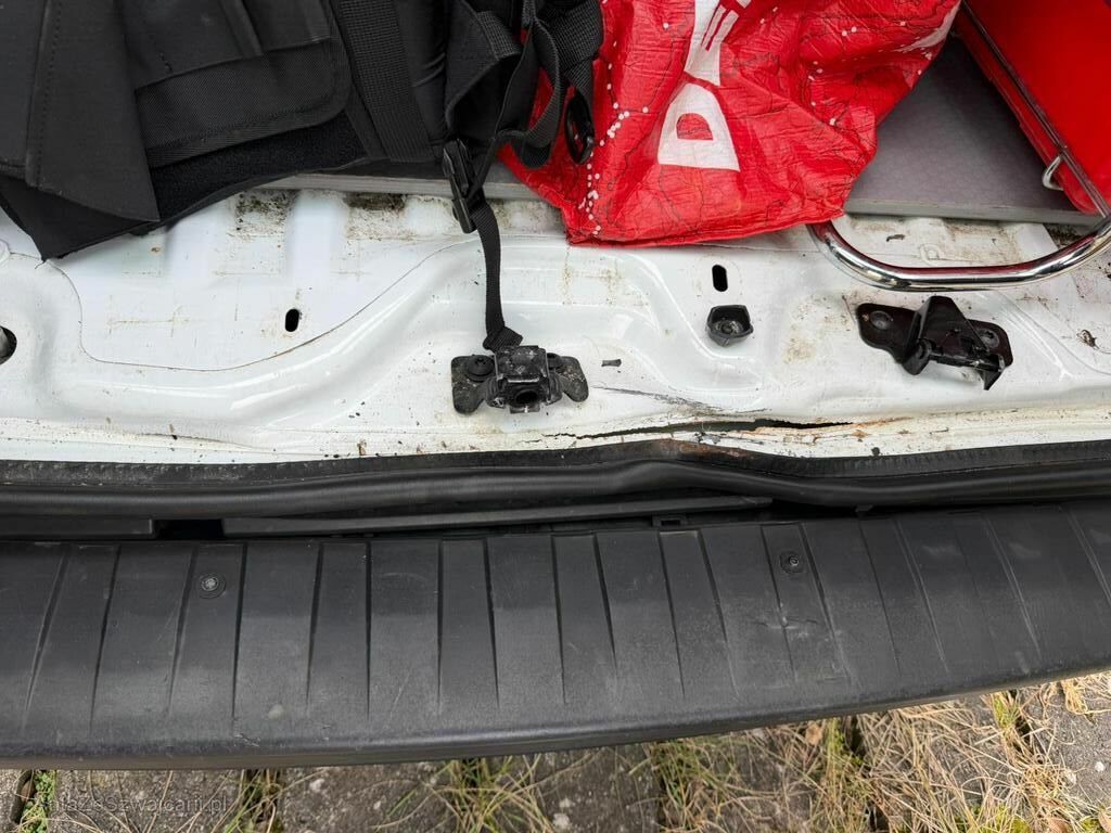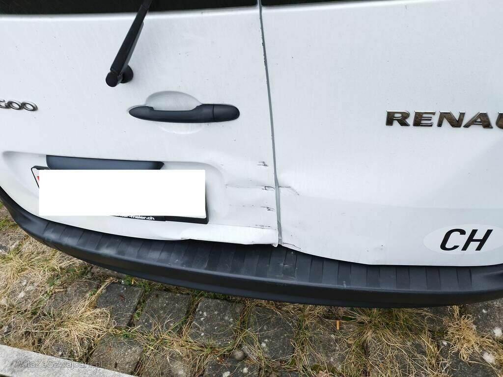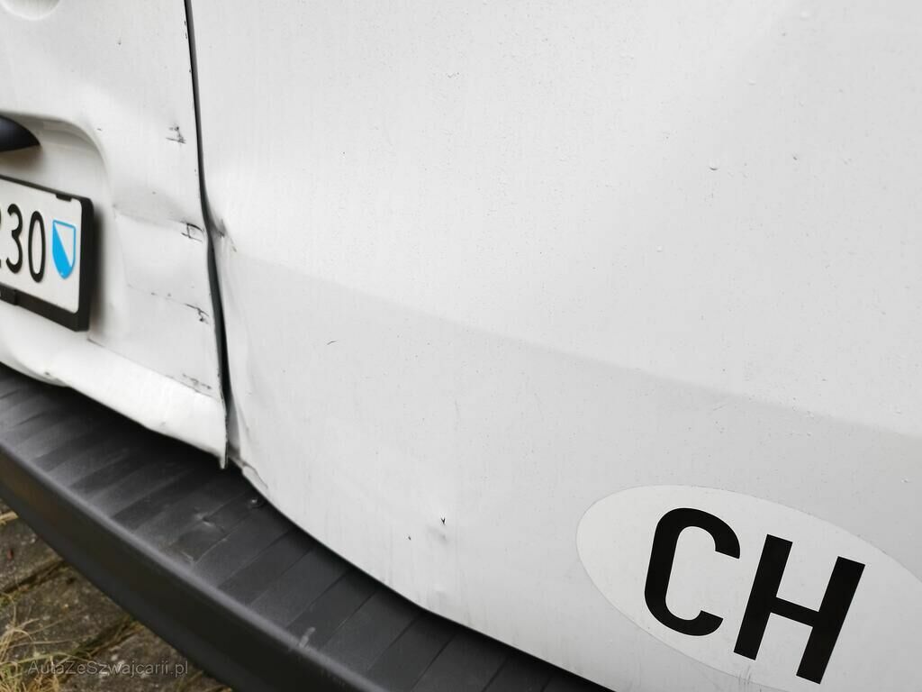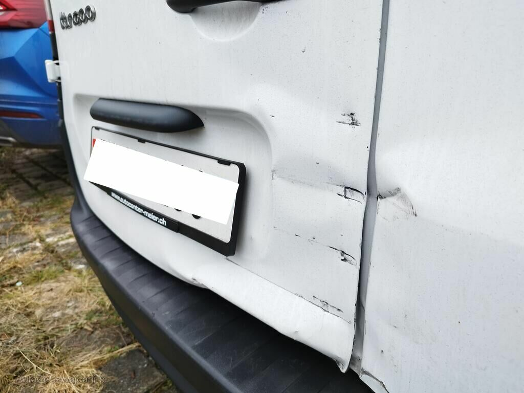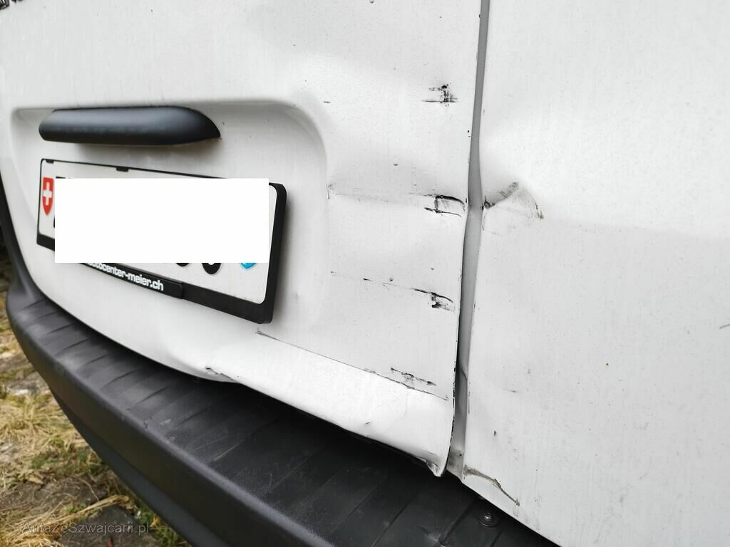 Beide Flügeltüren hinten sind deformiert, die Stossstange hinten ist augerissen, das Heckblech ist deformiert, das Bodenblech ist gerissen, beide Heckleuchten sind gerissen, die Seitenwand hinten rechts ist gestaucht.