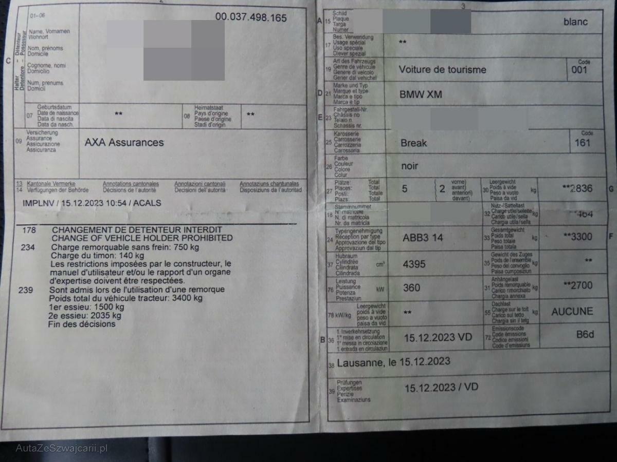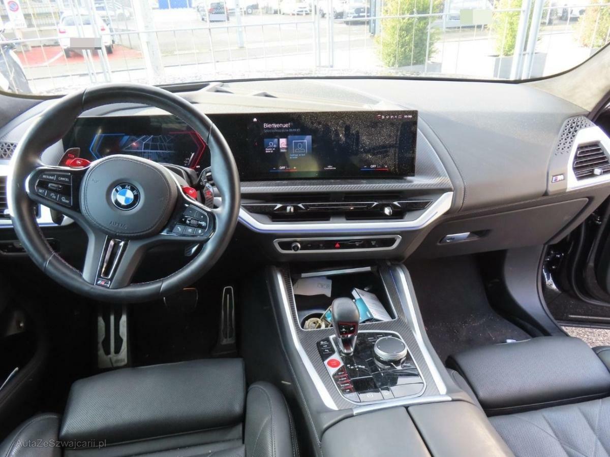 | Serienausstattung | Bremsbelagverschleisssensoren vorne und hinten, Paket: M Aerodynamicpaket, Licht: Innenbeleuchtung beinhaltet: - Leselicht vorne (Fahrer/Beifahrer) - Leselicht hinten (mittig) - Make-Up-Spiegel-Leuchten (Fahrer/Beifahrer) - Handschuhkasten innen - Türausstiegsleuchte vorne (links / rechts) - Fußraumleuchte vorne (links / rechts) - Gepäckraum Lichtband (links / rechts), Ladekabel (Mode 3) für öffentliches Laden - AC-Laden an öffentlichen Ladesäulen für Typ2-Märkte - 11 kW (3-phasig) - Kabellänge: 5m - Aufbewahrung in Tasche im Gepäckraum, Bremsscheiben hinten, innenbelüftet, Licht: LED-Scheinwerfer - adaptiver LED-Scheinwerfer - Abblendlicht (LED-Matrix Technologie) - Fernlicht (LED-Matrix Technologie) - Tagfahrlicht und Fahrtrichtungsanzeiger (in separater Leuchteneinheit) - Leuchtweitenregulierung (automatische Anpassung an die Fahrsituation über vertikalen Schwenkmechanismus und Zu-/Abschalten von LED-Segmenten) - Automatisches Abbiegelicht (Cornering Light) - Standlicht - Heckleuchten - alle Außenleuchten in LED Technologie, Sonnenblenden mit Make-Up-Spiegel beleuchtet, M Sportbremse, schwarz hochglänzend Schwarz hochglänzend lackierte Bremssättel mit M-Schriftzug, Paket: Erweitertes Außenspiegelpaket - elektrisch einstellbar und beheizt, asphärisch - mit elektrischer Anklappfunktion - Bordsteinautomatik - Abblendfunktion Fahrerseite, Klima: Nanofilter, BMW ID Mit der BMW ID wird der Fahrer auf dem Display persönlich begrüßt und alle personalisierten Funktionen stehen zur Verfügung. Bei Verknüpfung der BMW ID mit dem Schlüssel wird die BMW ID bereits mit Entriegelung automatisch aktiviert. Die BMW ID ermöglicht es personalisierte Einstellungen zu speichern und auf andere BMW Fahrzeuge zu übertragen. Für Fahrer im Gastprofil sind Funktionen, die persönliche Daten verarbeiten, nicht verfügbar., Fahrwerk: M Sportdifferential - Verbesserung von Traktion, Agilität, Stabilität sowie Fahrverhalten - Komfort durch harmonisches Übergangsverhalten bei impulsiven Lenkimpulsen - Systemseitige Einstellung des Sperrgrad (Hinterachse), je nach Fahrsituation und Fahrbahnbeschaffenheit zwischen 0 und 100 %, BMW Gestiksteuerung - Spezifisch festgelegte Funktionen können im Erkennungsbereich oberhalb der vorderen Mittelkonsole durch Gestik per Hand gesteuert werden., M Sicherheitsgurte - beinhaltet Sicherheitsgurte schwarz mit Farbcodierung in M Farben für erste und zweite Sitzreihe, Fensterheber, elektrisch - Einklemmschutz und Komfortöffnung/-schließung, Airbag: Frontairbagsystem für Fahrer und Beifahrer, Einstiegsleisten beleuchtet mit Schriftzug, Klima: Klimatisierungsautomatik 4- Zonen - Temperaturregelung für Fahrer, Einstellung von Luftmenge und Luftverteilung Automatikprogramm mit 5 Intensitätsstufen für Fahrer, Beifahrer und Fondpassagiere getrennt - Automatikprogramm mit 5 Intensitätsstufen - Einstellung der Temperaturschichtung für Fahrer und Beifahrer getrennt über MMI - Klimabedienteil vorn mit Vollfarbdisplay - separates Klimabedienfeld für Fondpassagiere in der Mittelkonsole hinten - SYNC-Funktion, Media: DAB+ Tuner, Assist: Akustischer Fussgängerschutz - Künstlich generierter Sound beim elektrischen Fahren zum Schutz anderer Verkehrsteilnehmer (akustische Wahrnehmung). Beim Neu-Start immer aktiv (Default On)., Getränkehalter, temperiert - Getränkehalter beheizt und gekühlt in der Mittelkonsole - Einzeln aktivierbar über Tasten (links und rechts) - Klimafunktion dargestellt über Ambiente Beleuchtung (Blau und Rot), Media: BMW Live Cockpit Professional - rahmenloses Curved Display mit 12,3'' Instrumentendisplay und 14,9" Touch-Display - Augmented View im Touch-Display - Einstellungen in Fahrerprofilen speicherbar, Lenkrad: Schaltwippen am Lenkrad, BMW Niere Iconic Glow - Optisches Exterieur-Highlight: Inszenierung der BMW Niere durch innovative LED-Fasertechnologie, Komfortzugang Beinhaltet folgende Funktionen: - Schlüsselloser Zugang zum Fahrzeug - Welcome Inszenierung bei Annäherung ans Fahrzeug - Automatische Entriegelung bei Annäherung ans Fahrzeug - Automatische Verriegelung beim Entfernen vom Fahrzeug - Berührungsloses Öffnen und Schliessen der Heckklappe Beinhaltet den BMW Digital Key mit folgenden Funktionen: - Ver- und Entriegeln sowie Starten des Fahrzeugs unter Verwendung eines kompatiblen Smartphon., 3-Punkt-Sicherheitsgurte auf allen Plätzen, Bremsscheiben vorne, innenbelüftet, Fussmatten in Velours, Sitze: M Multifunktionssitze für Fahrer und Beifahrer Beinhaltet: - für Fahrer und Beifahrer - beinhaltet die Funktionen der Sitzverstellung, elektrisch mit Memory (Memoryfunktion auch für Beifahrersitz) und Lordosenstütze für Fahrer und Beifahrer - elektrische Einstellung für oberes Lehnensegment, Lehnenbreite und Oberschenkelauflage - platzierte Perforation inklusive XM spezifischem Nahtbild - beleuchtetes M Logo auf der Kopfstütze, Airbag: Kopfairbag 1. und 2. Sitzreihe, Intelligenter Notruf, Teleservices, Assist: Dynamische Stabilitäts Control (DSC) mit erweiterten Umfängen, Condition Based Service, Licht: Heimleuchten, Türen: Soft-Close-Automatik für Türen - Ermöglicht ein bequemes und sicheres Schliessen der Türen ohne viel Kraftaufwand und störende Zuschlaggeräusche. Versehentlich nicht richtig geschlossene Türen werden automatisch zugezogen., Lackierung: Metallic-Lackierung, Assist: Geschwindigkeitsregelung mit Bremsfunktion, Fahrwerk: M xDrive, Assist: Speed Limiter, Dekor: M Interieurleisten Carbon Fibre, Licht: Fernlicht-Assistent - Automatisches Ein- und Ausschalten des Fernlichtes abhängig von der Verkehrssituation - Steuerung über Sensor an der Vorderseite des Innenspiegels, Sonnenschutzverglasung Reduziert bei Sonneneinstrahlung die Aufheizung des Fahrzeuginnenraums. Stärker eingefärbte Verglasung im hinteren Fahrzeugbereich bewirkt eine stärkere Absorption des Sonnenlichtes für diese Flächen., Lenkrad: M Lederlenkrad, Paket: Connected Package Professional, Licht