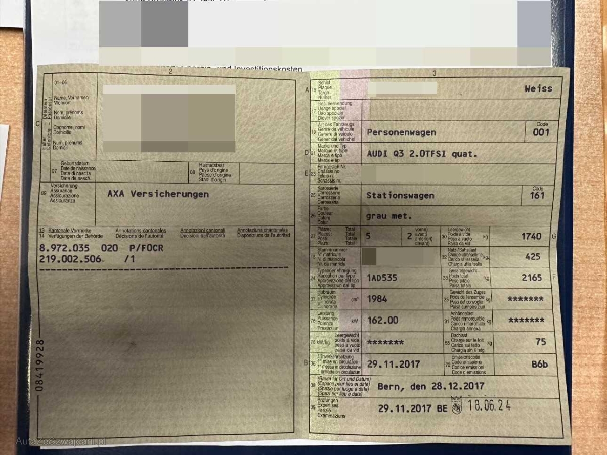 | Fahrzeugausweis | Vorhanden |