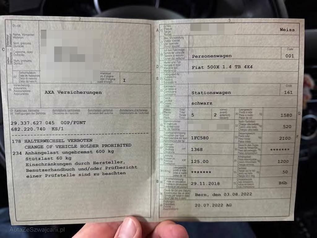 | Fahrzeugausweis | Vorhanden |