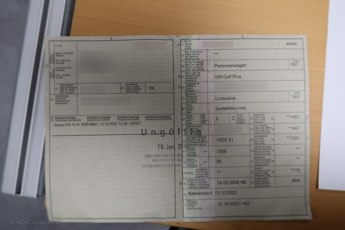 | Fahrzeugausweis | Vorhanden |