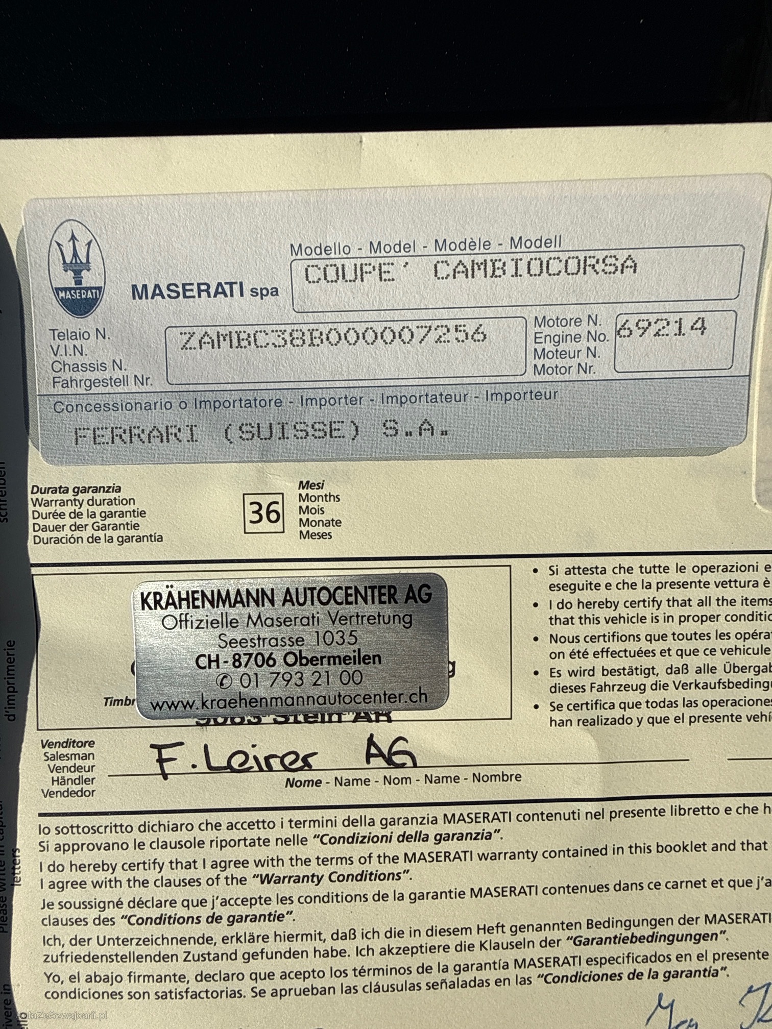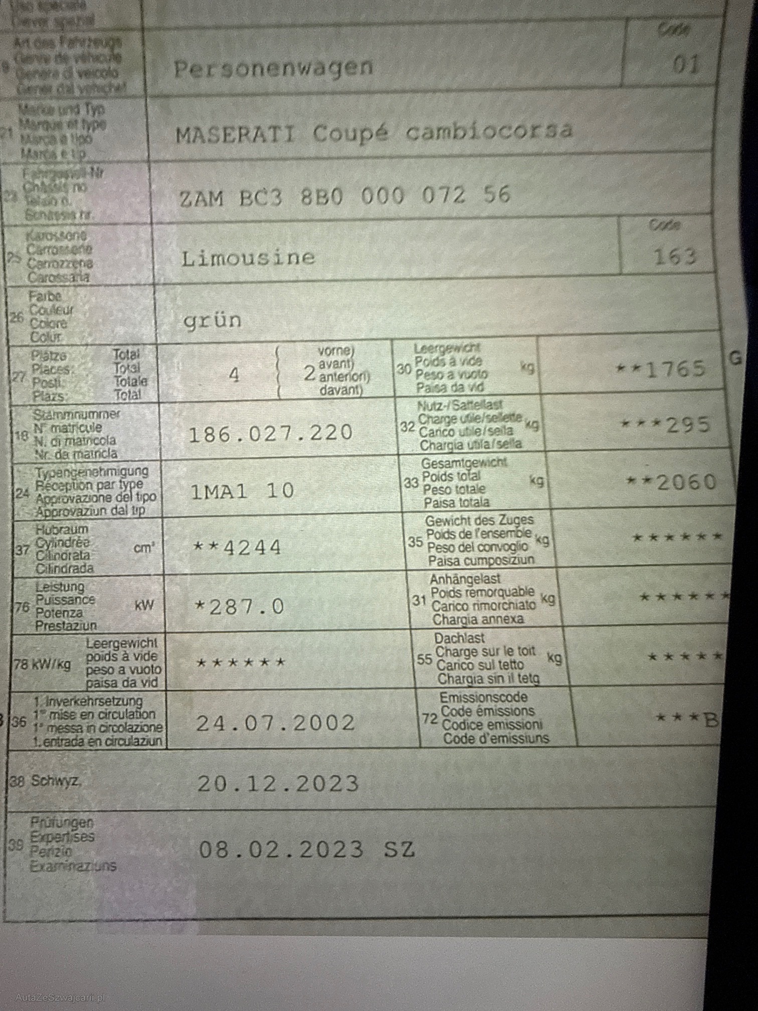 | Kommentar | Unsere Fahrzeuge wurden keiner Prüfung unterzogen. Fahrzeugkauf auf eigenes Risiko ab Platz ohne Nachwährschaft. Das Gewährleisten für Sachmängel wird weggegangen. Fahrzeuglieferung, Fahrzeugzustand und Ausstattung gemäss Bildern. |