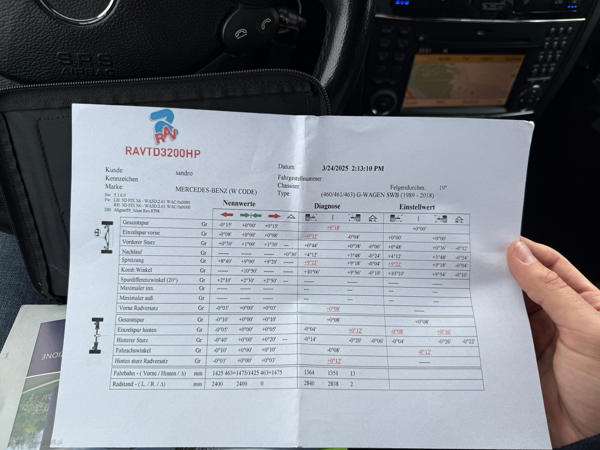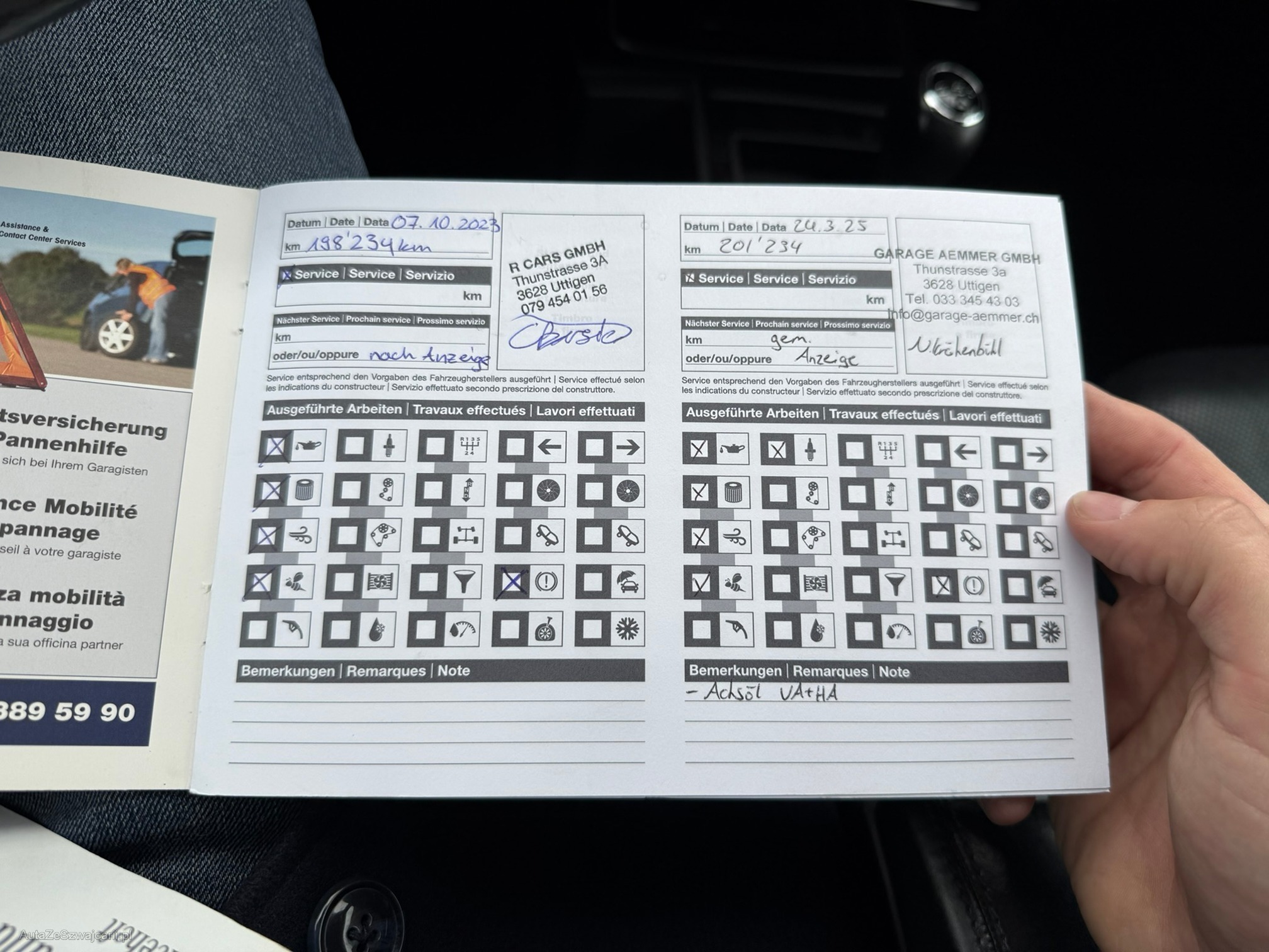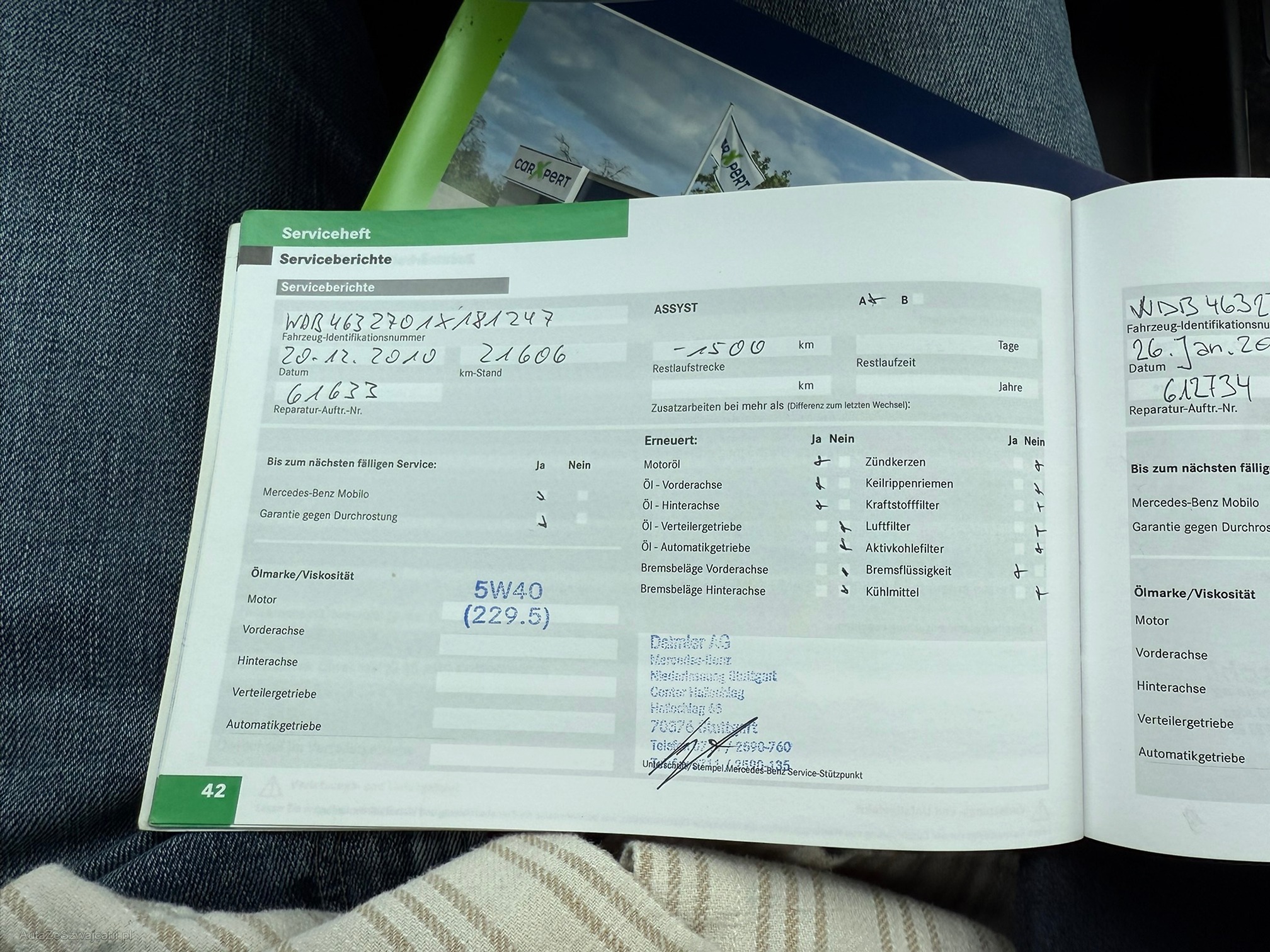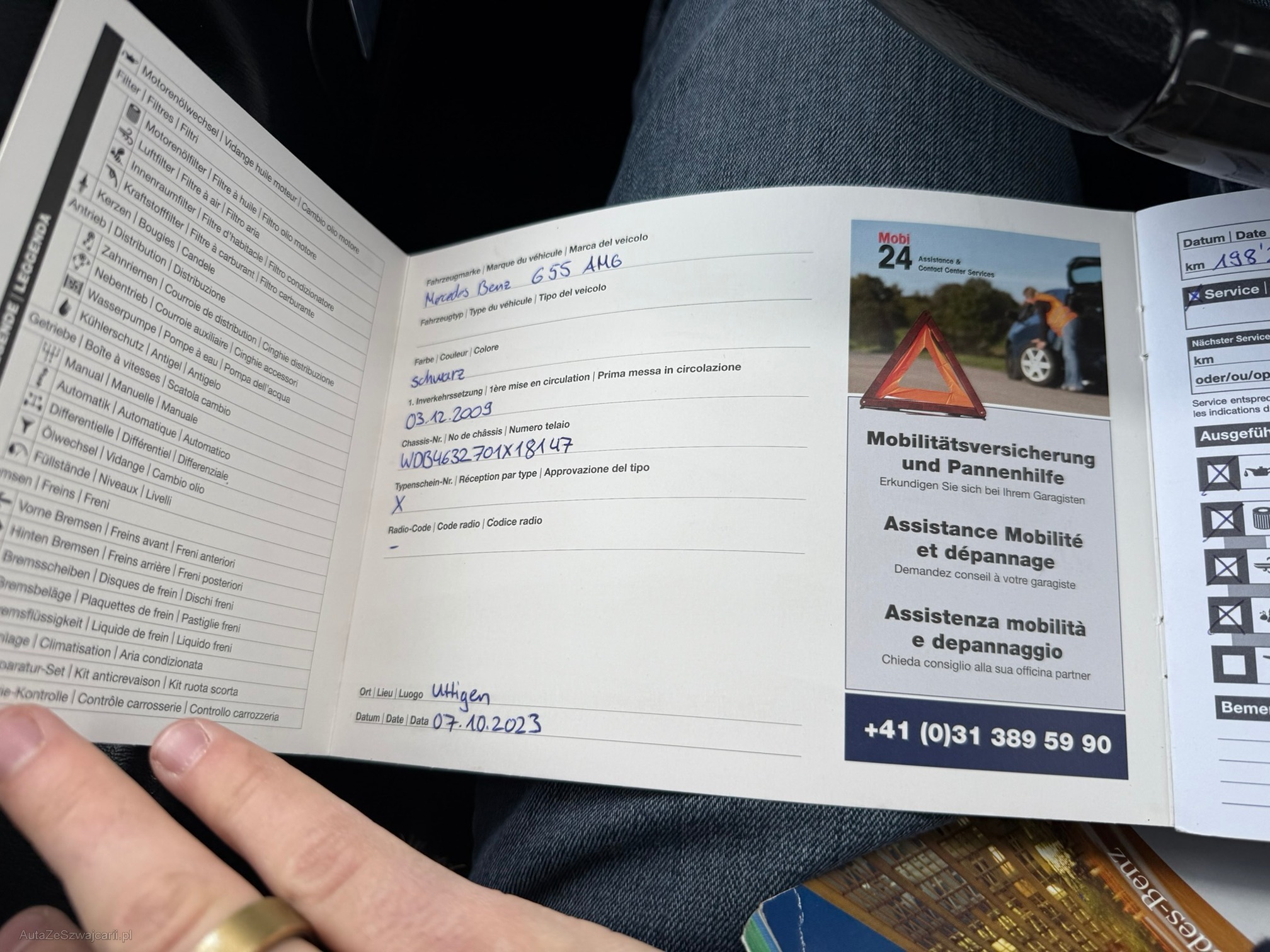 | Kommentar | Gepflegter G55 AMG Fährt und schaltet sich angenehm 2 Schlüssel; 4-fach bereift mit guten Winterreifen Letzter Service (Gross) 03/2025 inkl. neuer Lenkgeometrie Vorbesitzer hat viel in Rostbehandlung investiert (Scheibenrahmen, Carrosserie-Fälze, Türrahmen usw.) Der Wagen steht sehr gut da und hat nur wenige Kratzer im Lack. Innenraum ist sehr gepflegt. Fahrersitz hat nur leichte Abnutzungen. Softlack an Mittelkonsole löst sich an vereinzelten Stellen etwas. Klarlack von Innenraumzierleisten und Lenkrad teilweise gerissen Facelift-Frontstange mit originalem 63er Stossfänger in Wagenfarbe (originaler 55er Stossfänger ist vorhanden und wird mitgegeben) Direktimport aus DE; Serviceheft vorhanden und regelmässig gewartet Einträge Serviceheft: Am 20.12.2010 bei 21'606km (Daimler AG, Stuttgart) Am 26.01.2012 bei 41'097km (ab hier in CH) Am 11.12.2012 bei 58'331km Am 22.01.2014 bei 76'398km Am 04.03.2015 bei 93'251km Am 16.02.2016 bei 108'841km Am 15.03.2017 bei 126'643km Am 08.05.2018 bei 141'776km Am 24.04.2019 bei 153'680km Am 15.09.2020 bei 174'115km Am 07.10.2023 bei 198'234km Am 24.03.2025 bei 201'234km (Motorenöl und -filter; Luftfilter; 16 Zündkerzen; Pollenfilter; Achsöle VA und HA; Lenkgeometrie) Sehr interessante Sonderausstattung wie: Sitzheizung und -klimatisierung vorne; Sitzheizung hinten; Lenkradheizung; Standheizung; Alcantara Dachhimmel; Designo Lederausstattung; Xenon-Scheinwerfer; Rückfahrkamera; Navi; Tempomat; Schiebedach; AHK 3500kg; Harman Kardon Soundsystem Mängel: - Leichter Motorölverlust - MFK fällig - Keine Sommerbereifung - Felgen sind teilweise verkratzt - Fehlermeldung Nebelleuchten (sind in originaler 55er Stossstange vorhanden) Ohne jede Garantie. Zustand gemäss Bilder. Es wurde kein Test am Fahrzeug vorgenommen. Für sichtbare und unsichtbare Mängel wird keine Haftung übernommen. Kauf auf eigenes Risiko. Jede Gewährleistung, soweit nach Gesetz möglich, wird wegbedungen. Insbesondere sind Wandelung und Minderung ausgeschlossen. |