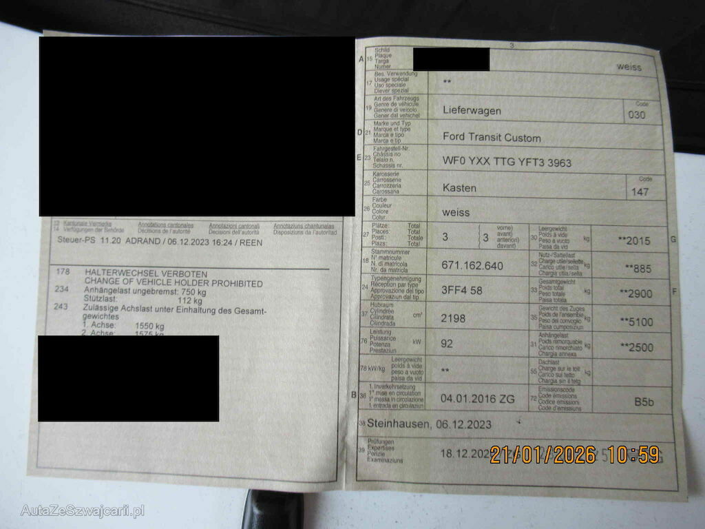 | Typ | TRANSIT CUST 290L1TREND |