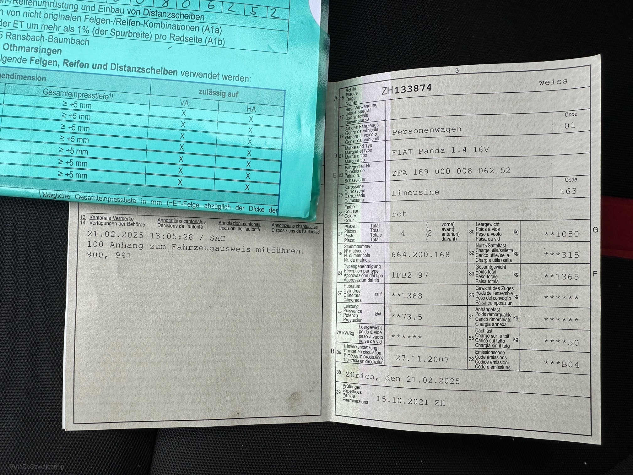 | Kommentar | Ergebnis nach Kurztest: Antriebswellenmanchetten innen rissig/undicht. Ölspuren am Motor. Handbremsseil harzt. Stossstange vorne Farbabplatzer. weitere Mängel möglich. |