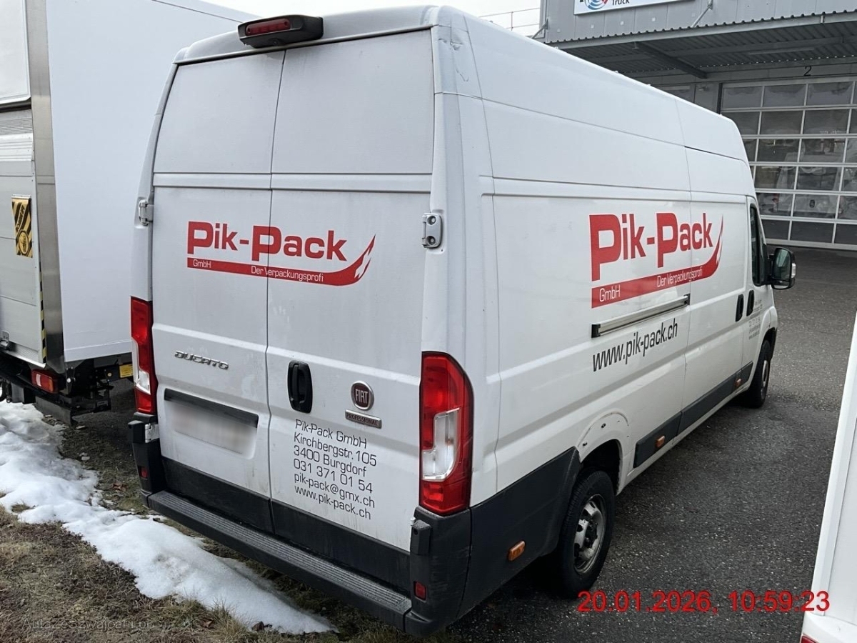 | Serienausstattung | Airbag: Fahrerairbag, Assist: Antiblockiersystem (ABS), Becherhalter in der Mittelkonsole, ESC, ESP mit Überschlagsvermeidung, Berganfahrhilfe und adaptiver Lastkontrolle (LAC), Elektrische Fensterheber, Fiat Garantie: 3 Jahre oder 100'000 km (ab 1. Inv.), Getriebe: 6-Gang-Getriebe, Gurtstraffer Fahrer, Kraftstofftank 90 Liter, Lackierung: Uni-Lackierung, Laderaumverkleidung halbhoch, Licht: Drittes Bremslicht, Licht: Halogenscheinwerfer, Licht: Nebelschlussleuchte, Licht: Tagfahrlicht, Partikelfilter und Oxydationskatalysator, Polster: Stoff-Ausstattung, Räder: 15", Räder: Reifenreparaturset Fix &, Räder: Stahlersatzrad in Originalgrösse, Scheinwerferblende, Schutzstreben hinter dem Fahrersitz, Servolenkung, Sitze: Fahrersitz höhenverstellbar, Türen: Hecktüren verblecht, Wechselstromgenerator verstärkt 150 A/h, Wegfahrsperre elektronisch, Zentralverriegelung mit Fernbedienung |
