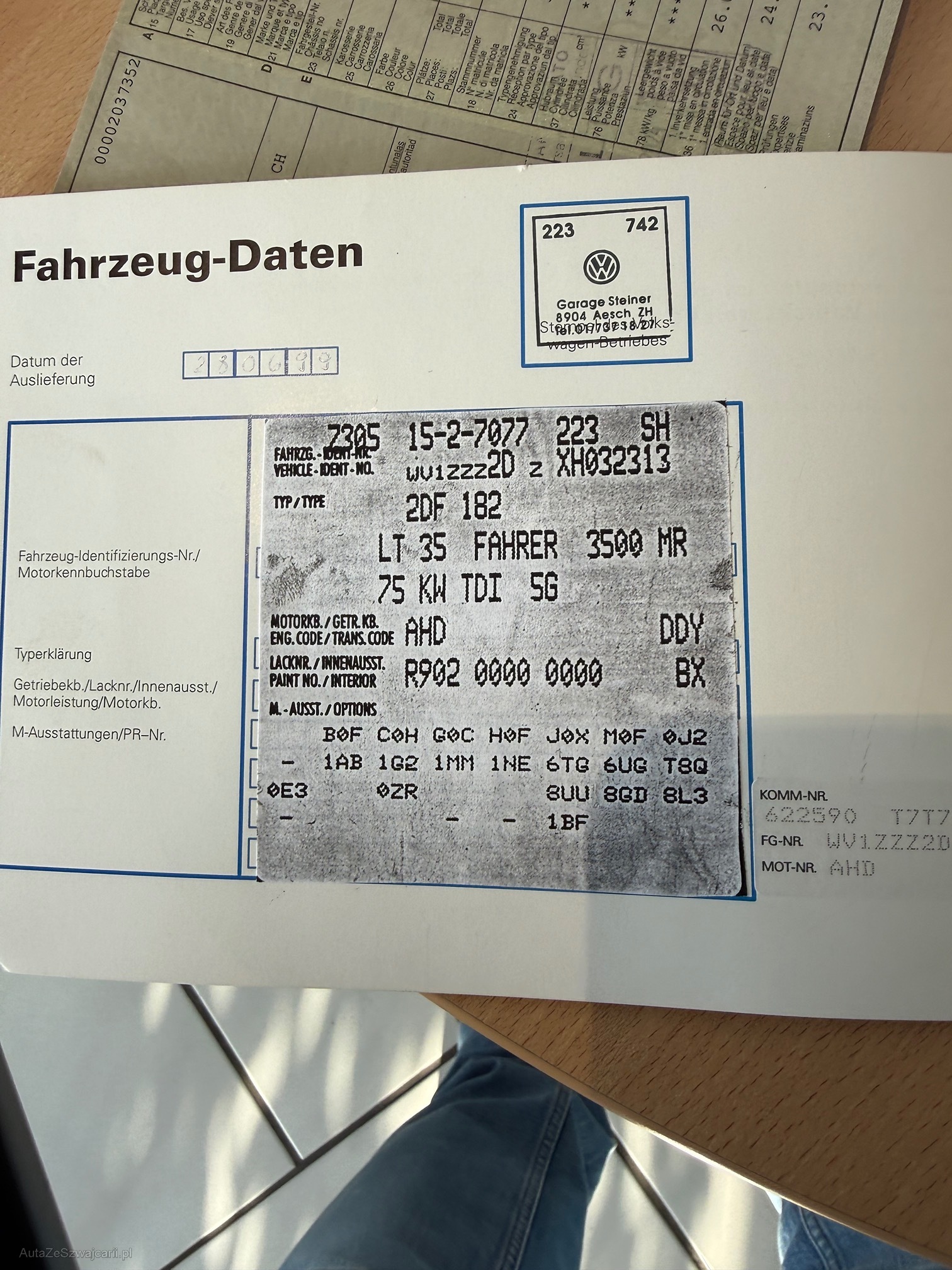 | VIN | WV1ZZZ2DZXH032313 |