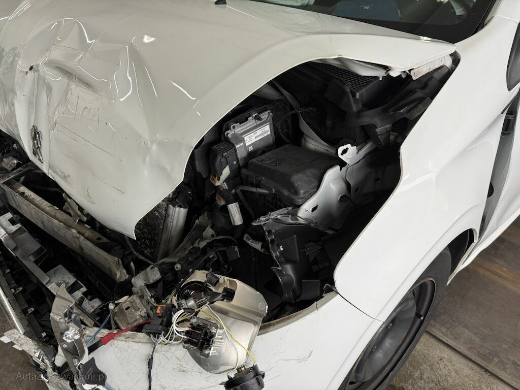Frontschaden: Front grossflächig eingedrückt und diverse Teile zerstört.