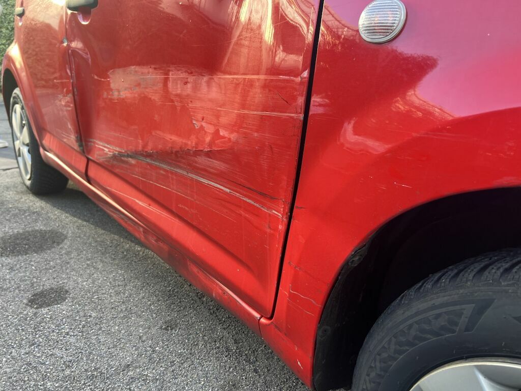 Kotflügel, Türen undSchweller rechts eingedrückt.