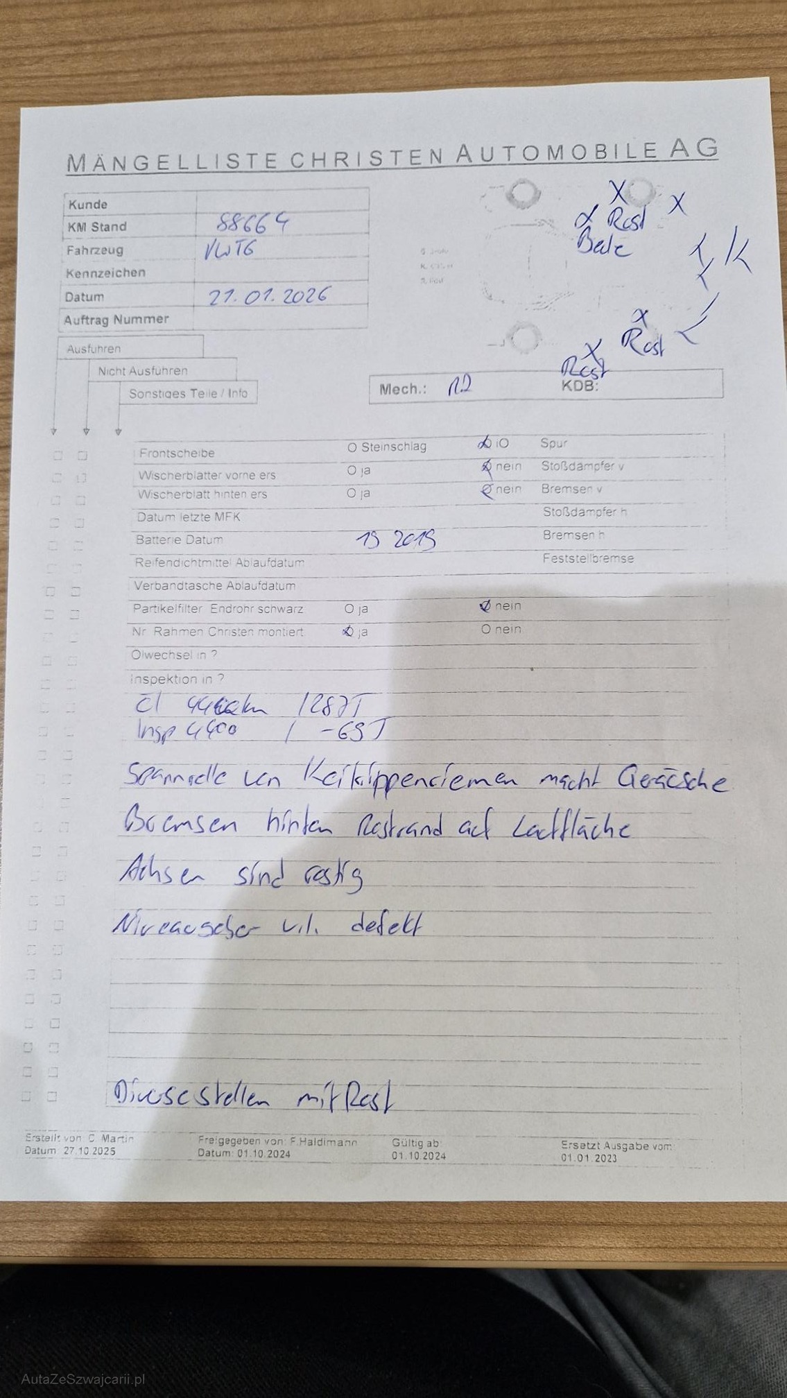 | Rost am Fahrzeug | Yes |