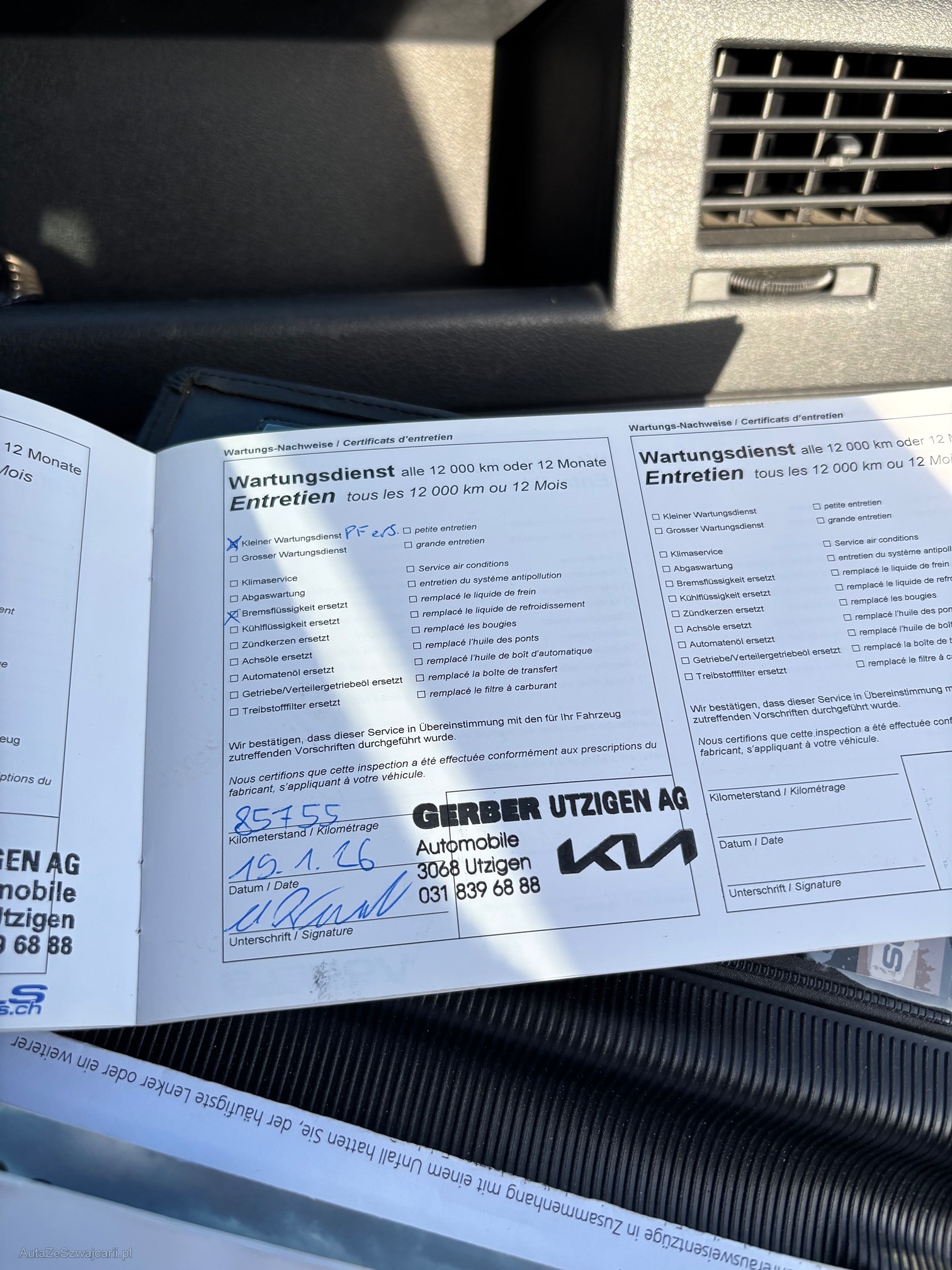 | Kommentar | Bremsen vorne neu, Lenkwinkelsensor neu ersetzt (Fr. 900.--) Auto ist Prüfbereit, Hinterachse hat Rost, siehe Fotos! diverse kleine Kratzer und Beulen siehe Fotos letzter Service 19.01.2026, bei 85'755 MFK - letzter Termin 23.02.2022 Mängelliste nicht abschliessend! Fahrzeug ab Platz: Für sichtbare und nicht sichtbare Mängel wird nicht gehaftet. Keine Garantie, Keine Minderung und/oder Wandelung möglich. Keine Nachverhandlungen. Kein Werkstatt-Test durchgeführt. Barbezahlung bei Abholung des Fahrzeuges. Fahrzeug wird direkt vom Kunden verkauft. |