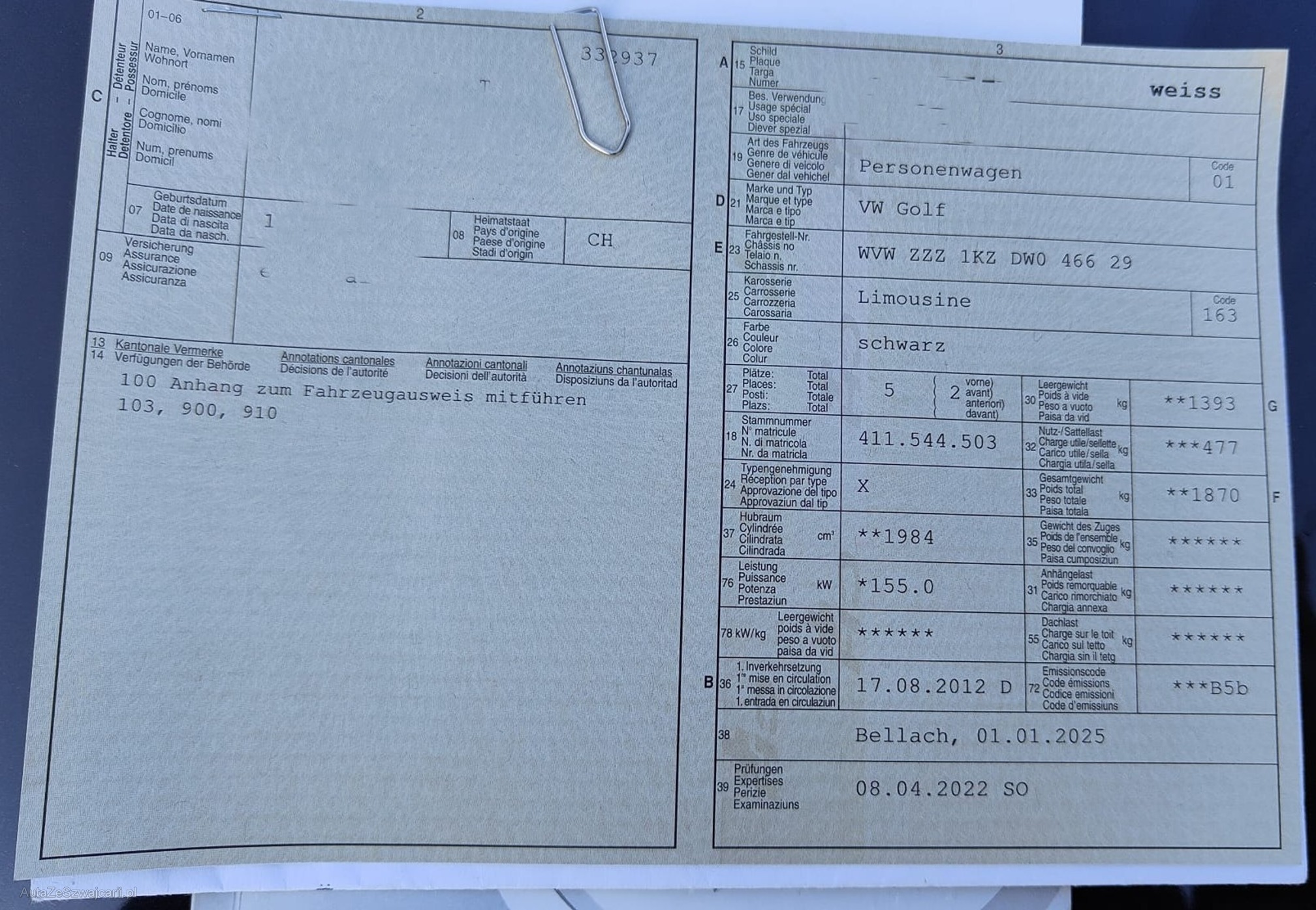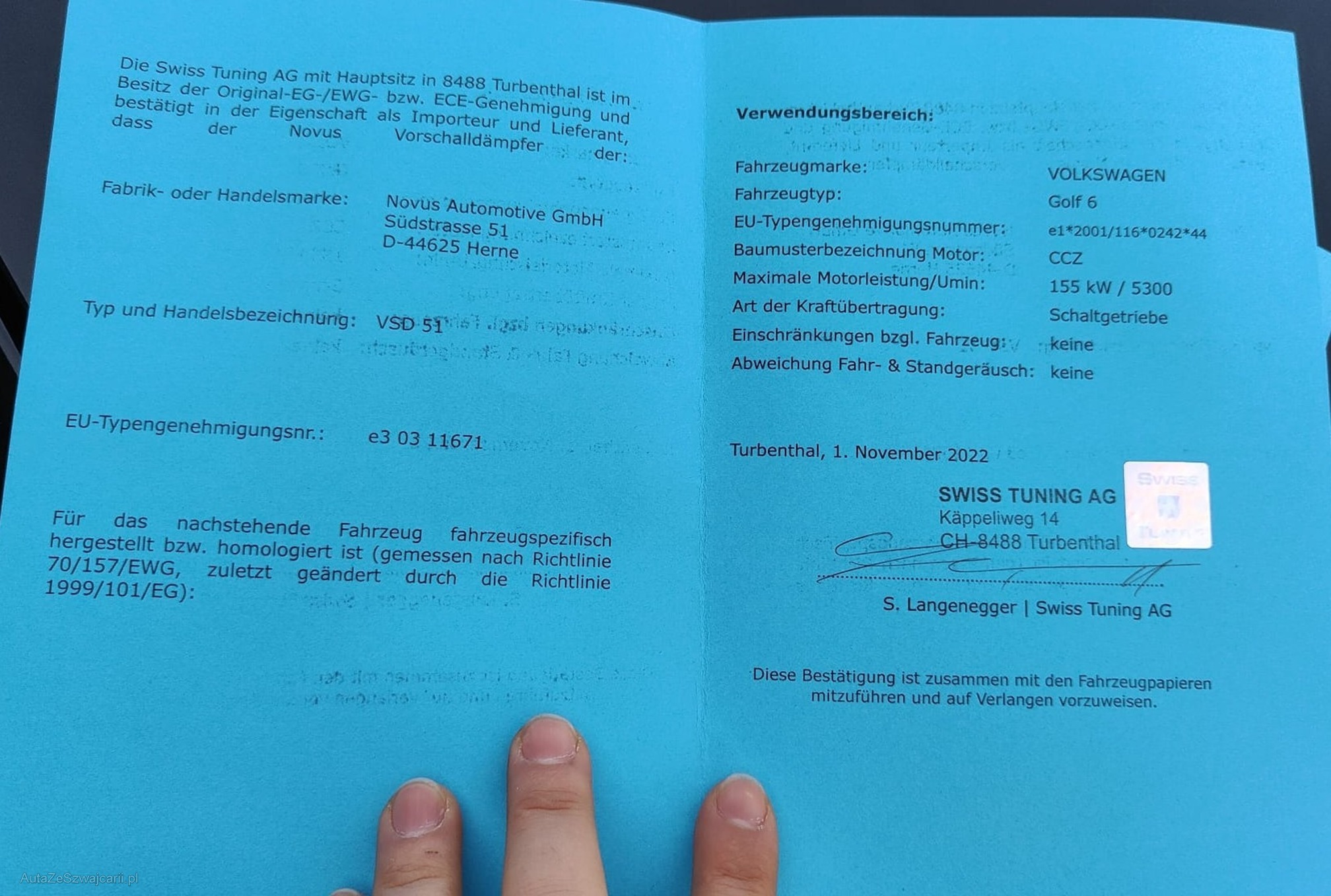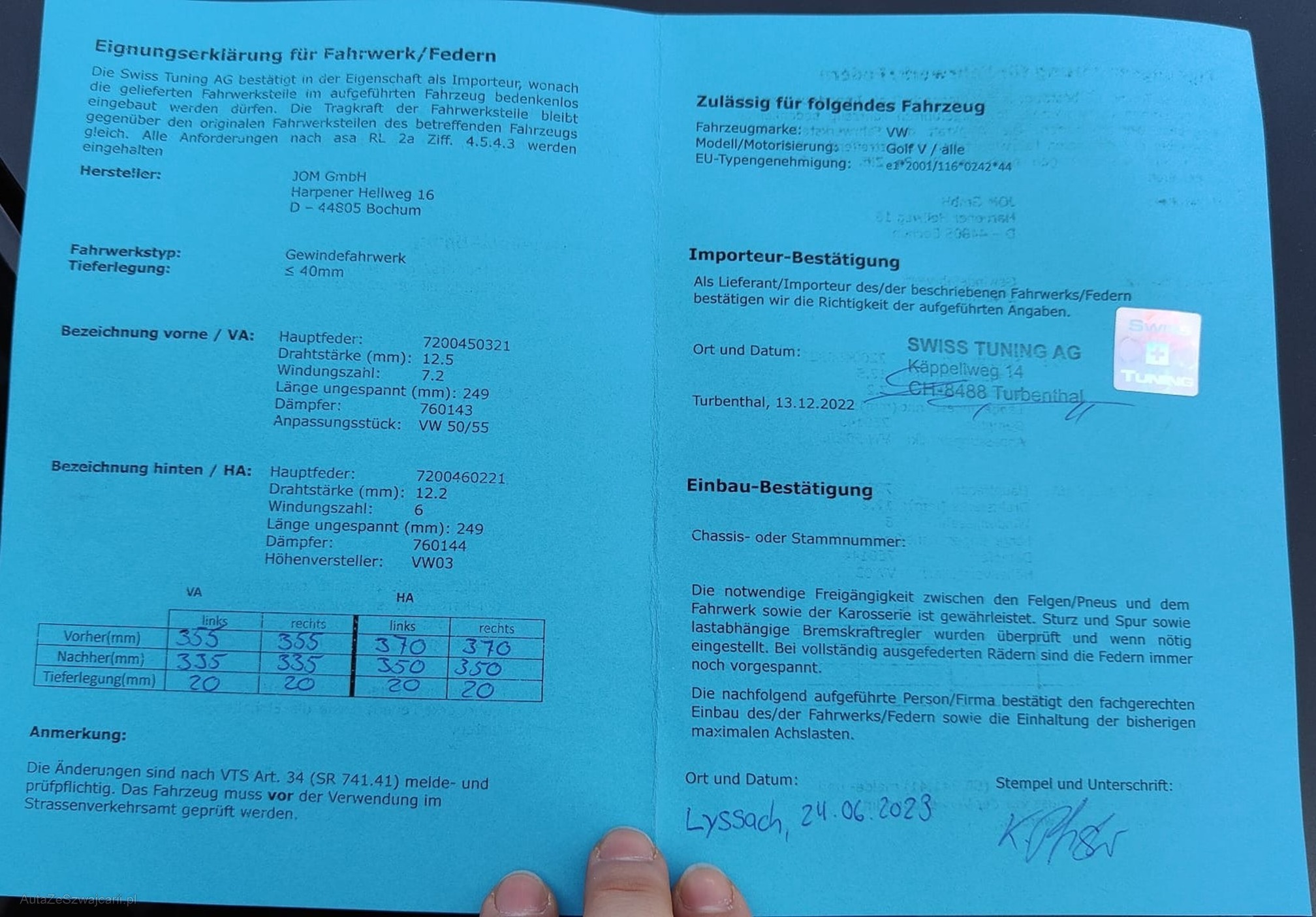 | Kommentar | - Div. Dellen und Kratzer - Mittelschalldämpfer verbaut siehe Eignungserklärung - Gewindefahrwerk verbaut siehe Eignungserklärung - Fahrzeugbereifung, Fahrzeugzustand und Ausstattung gemäss Bildern. Unsere Fahrzeuge wurden keiner Prüfung unterzogen, Fahrzeugkauf auf eigenes Risiko ab Platz ohne Nachwährschaft. Das Gewährleisten für Sachmängel wird weggegangen. |