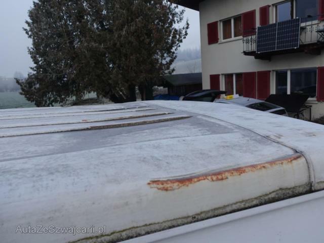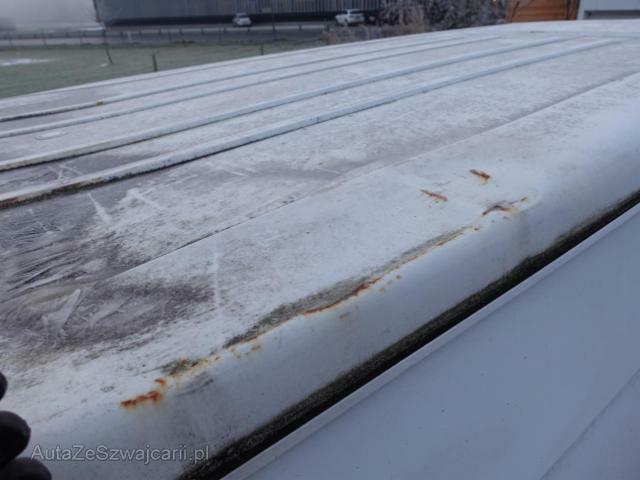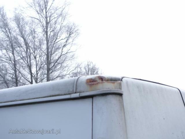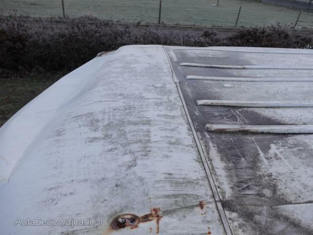 | Condition_and_Equipment | Zustand Fahrzeug ist rollbar. Schlüssel Nur ein Schlüssel vorhanden. Weitere wichtige Hinweise Motor läuft! --- Dach Dach eingedrückt. Weitere Beschädigungen Vorschäden: Schweller links und rechts deformiert und mit Rost befallen, B-Säule rechts unten mit Rost befallen, Schiebetüre links verbeult und Lack gerissen, Seitenwand hinten links verbeult, D-Säule und Dachecke hinten links verbeult, D-Säule und Dachecke hinten rechts verbeult, Seitenwand und Schiebetüre rechts verbeult und zerkratzt,Türe vorne rechts verbeult, fehlende Zierleisten am Fahrzeug, Stossstange hinten rechts beschädigt, Tankdeckel fehlt --- Serienaustattung Airbag Fahrerseite Elektrische Fensterheber vorne Aussenspiegel elektrisch verstellbar und beheizbar Servolenkung Getönte Scheiben Wegfahrsperre PATS Radio/ CD AUDIO 6000 Seitenschutzleisten Beifahrer Doppelsitz Nebelscheinwerfer vorne Laderaumschiebetüre rechts Trennwand ohne Fenster Verzurr-Ösen im Laderaum Tagesfahrtlichtschaltung Fahrersitz 6-fach verstellbar Radabdeckungen ABS + EBD Elektr. Bremskraftverteilung Garantie 3 Jahre/ 100'000 km Seitenwandverkleidung im Laderaum halbhoch Zentral- und Doppelverriegelung mit Fernbedienung Lederlenkrad/ Tempomat Kühlergrill in Karosseriefarbe inkl. Nebelscheinwerfer Klimaanlage vorne ESP und TCS Tiefdach Pack Visibility 1 Heckdoppelflügeltüren verblecht Keine Gewähr auf die Angaben der Serienausstattungen Sonderausstattung Trennwand mit Fenster Laderaumschiebetüre links Scharniere mit 256 Grad Öffnung Heckschwingtüre für erhöhtes Dach ohne Fenster |