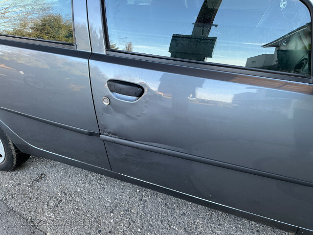| Condition_and_Equipment | Schlüssel Nur ein Schlüssel vorhanden. Kategorie Das Fahrzeug wird vom Besitzer noch benutzt. --- Rechts Rechte Seite beschädigt. Heck Heck eingedrückt. Heckblech eingedrückt. Kofferboden eingedrückt. Heckklappe eingedrückt. Sonstige Schäden Div.Carrosserie Teile sind leicht beschädigt. Div. Roststellen am Fahrzeug. Lackierung matt (stumpf, beschädigt). --- Ausstattung Klimaanlage Metallic-Lackierung |