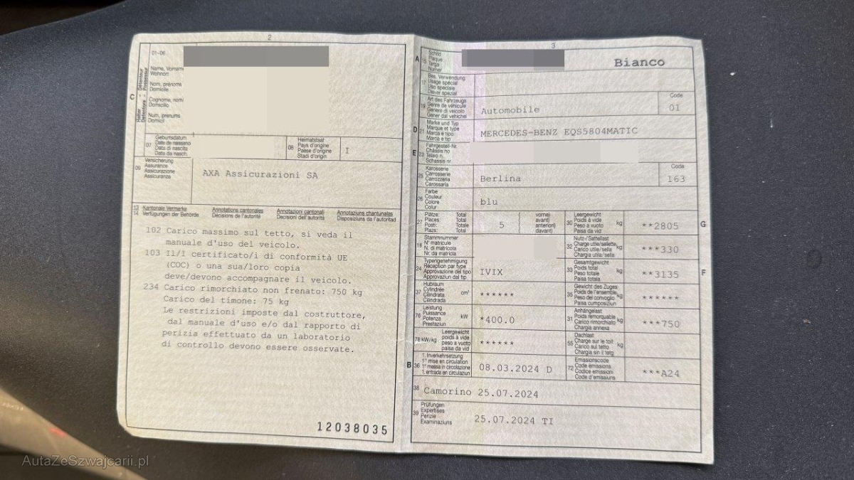 | Fahrzeugausweis | Vorhanden |
