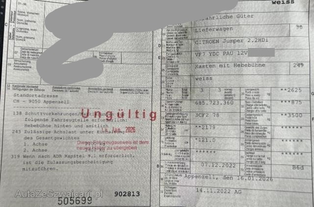 | Condition_and_Equipment | Zustand Fahrzeug ist fahrbar. Schlüssel Beide Schlüssel vorhanden. Weitere wichtige Hinweise ACHTUNG: ZUSÄTZLICH ZUM RESTWERTGEBOT WIRD EINE HANDLINGS-GEBÜHR VON CHF 500.00 ERHOBEN! --- Links Linke Seite beschädigt. Rechts Rechte Seite beschädigt. Heck Seitenwand hinten rechts eingedrückt/aufgestaucht. Sonstige Schäden Div.Carrosserie Teile sind leicht beschädigt. Lackierung matt (stumpf, beschädigt). Weitere Beschädigungen ACHTUNG: ZUSÄTZLICH ZUM RESTWERTGEBOT WIRD EINE HANDLINGS-GEBÜHR VON CHF 500.00 ERHOBEN! Der Kilometerstand wurde abgelesen. Gebrauchsspuren und kleinere Vorschäden sind möglich. Am Fahrzeug sind Winterräder montiert, keine weitere Bereifung vorhanden. Vor Ort waren: 1 Schlüssel, Ausweis, Borddokumente. Motor und Getriebe wurde nicht geprüft Weitere nicht aufgeführte oder verdeckte Schäden sind möglich! Diverse Bauteile durch Farbe verunreinigt. siehe Bilder! |