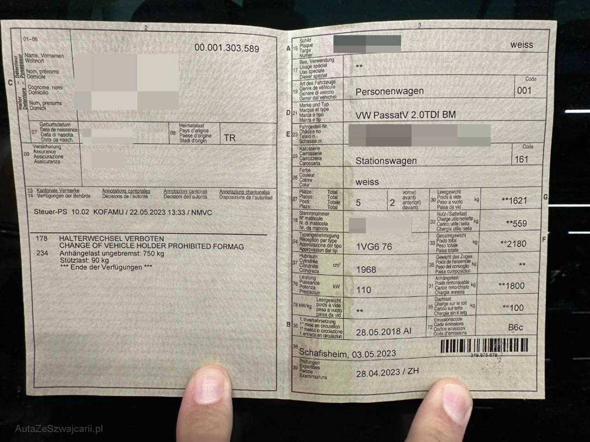 | Fahrzeugausweis | Vorhanden |