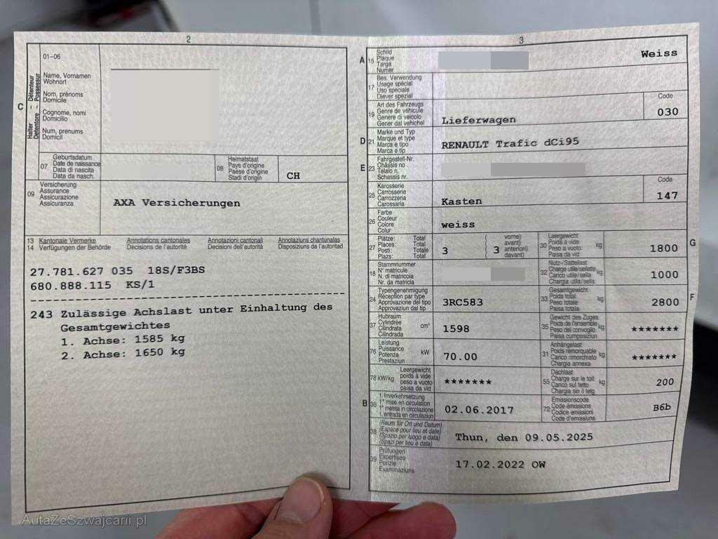 | Fahrzeugausweis | Vorhanden |