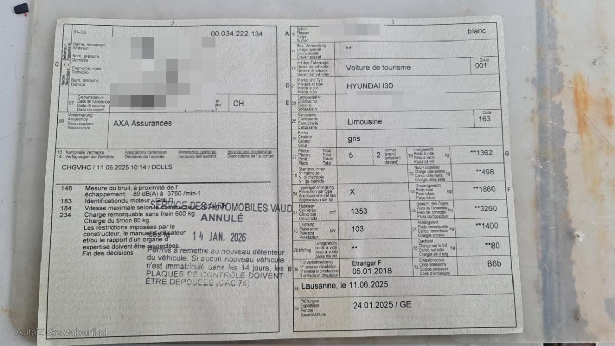 | Fahrzeugausweis | Vorhanden |