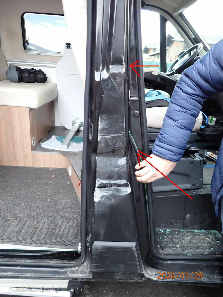 Flanc droite complet à remplacer. Montant central déformé