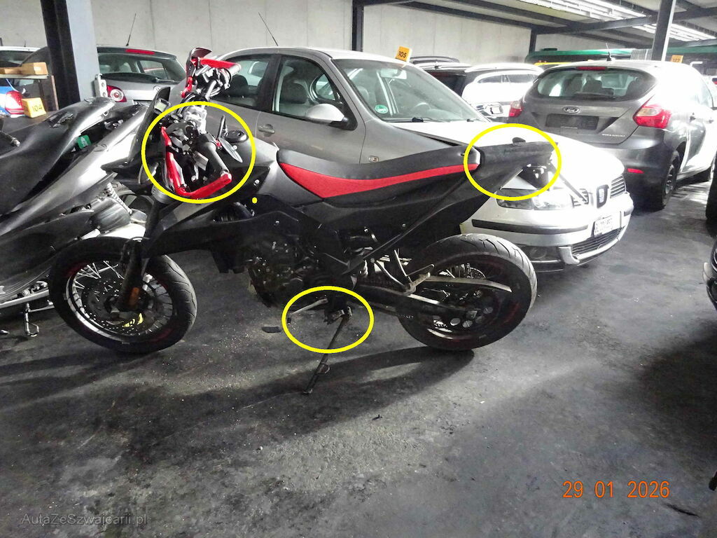 Lenker gestaucht, Verschalungen links und rechts und hinten gebrochen.