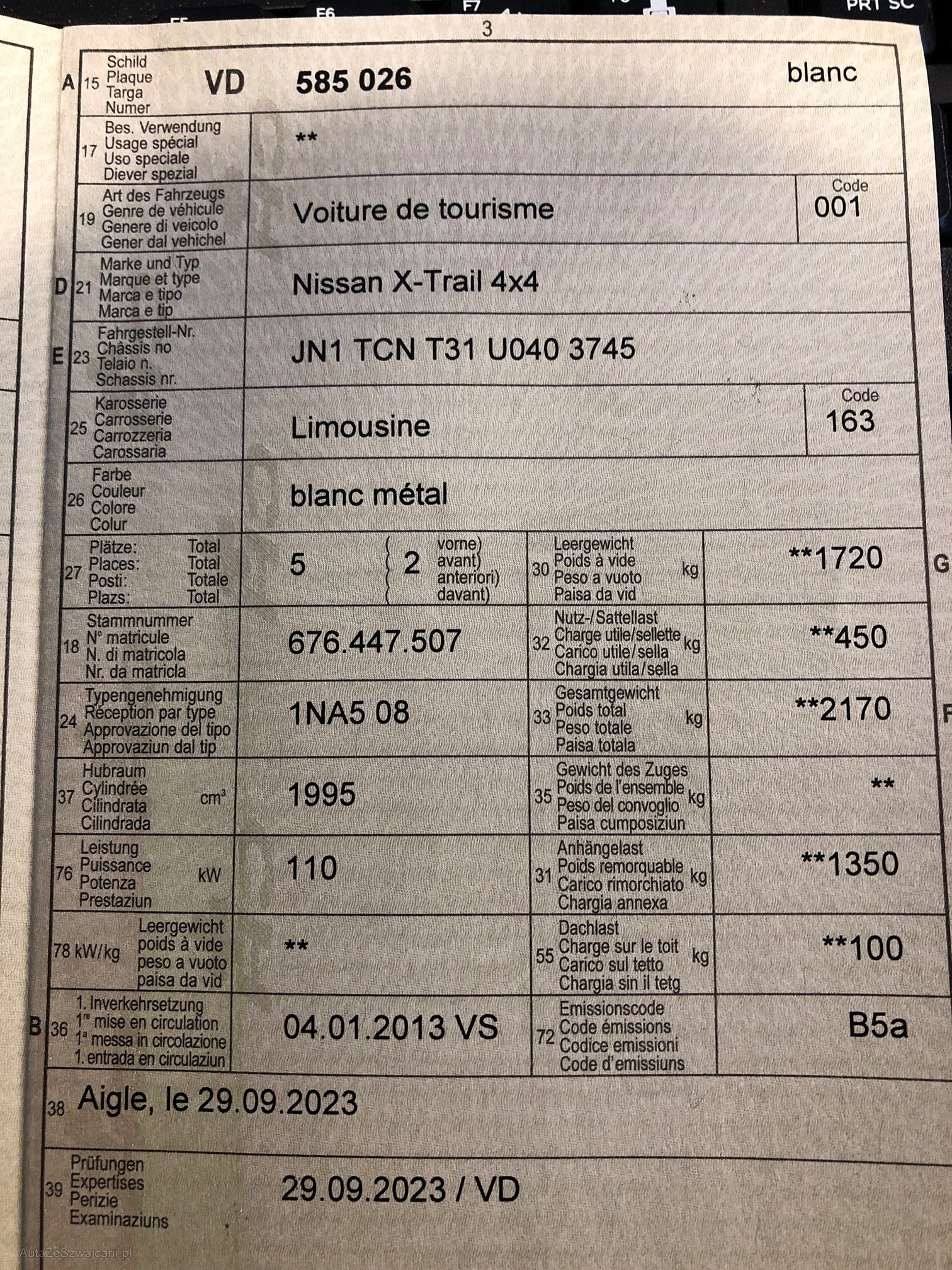 | Kommentar | Bremse vorne muss revidiert werden Radlager vorne starke Geräusche Reifen vorne abgefahren Bremsschilder hinten angerostet |